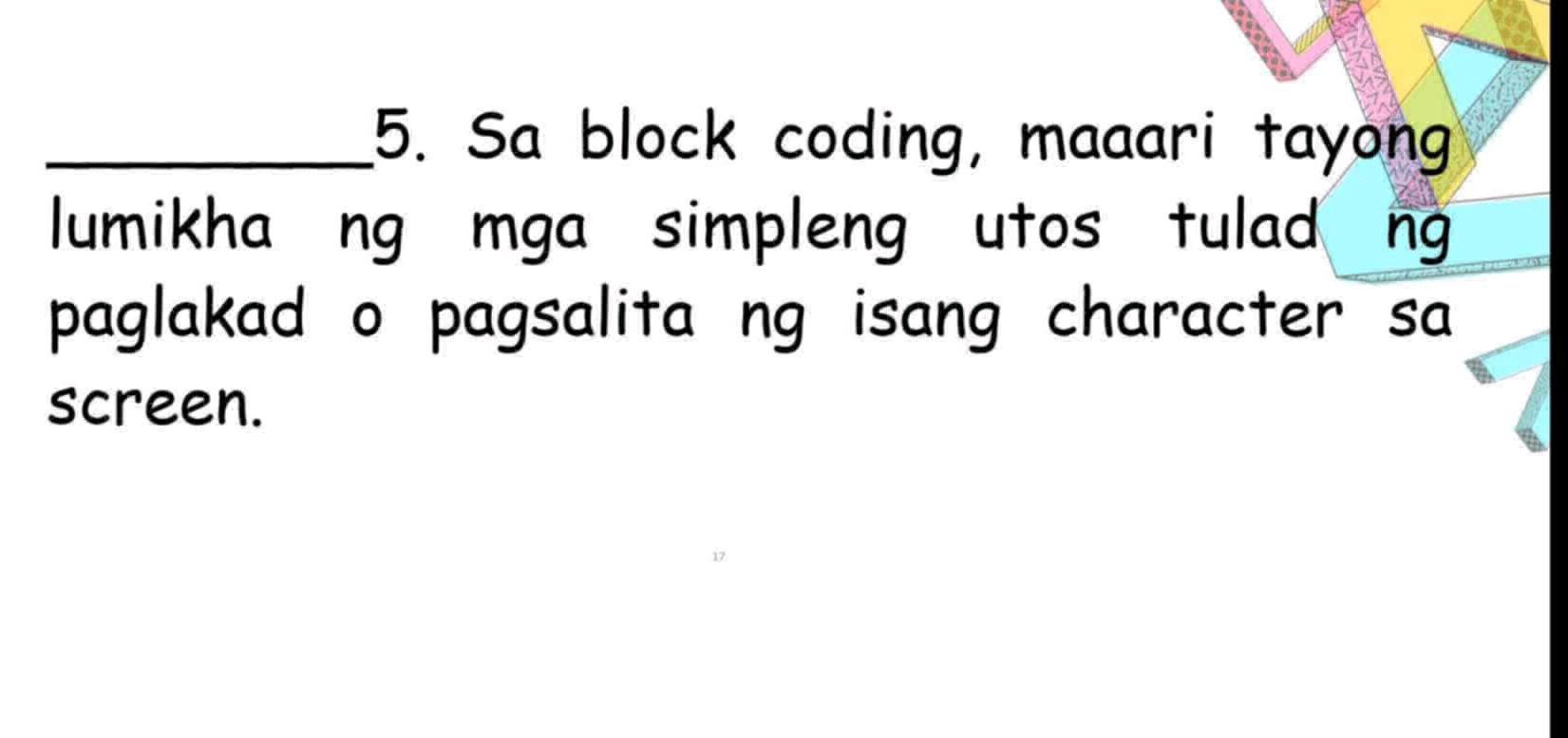 5. Sa block coding, maaari tayong lumikha ng | StudyX