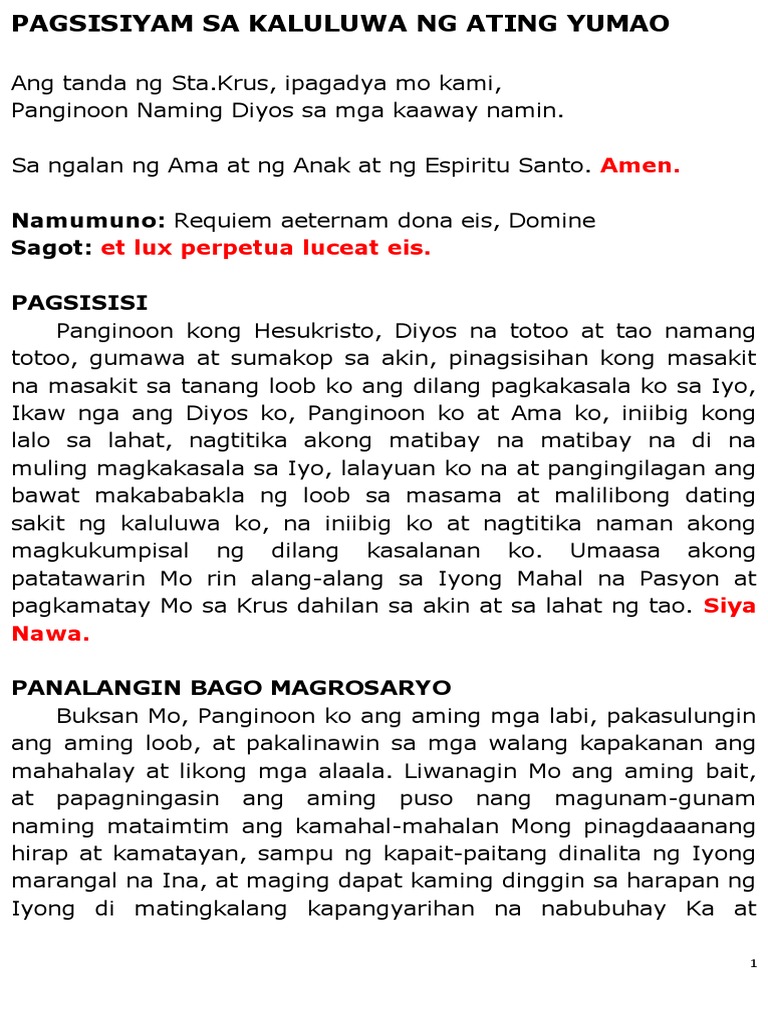 Dasal Ng Pagsisisi Tagalog - mga paksa