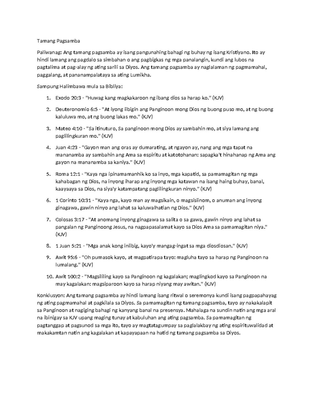 Tamang Pagsamba - FILIPINO SERMON - Tamang Pagsamba Paliwanag: Ang ...