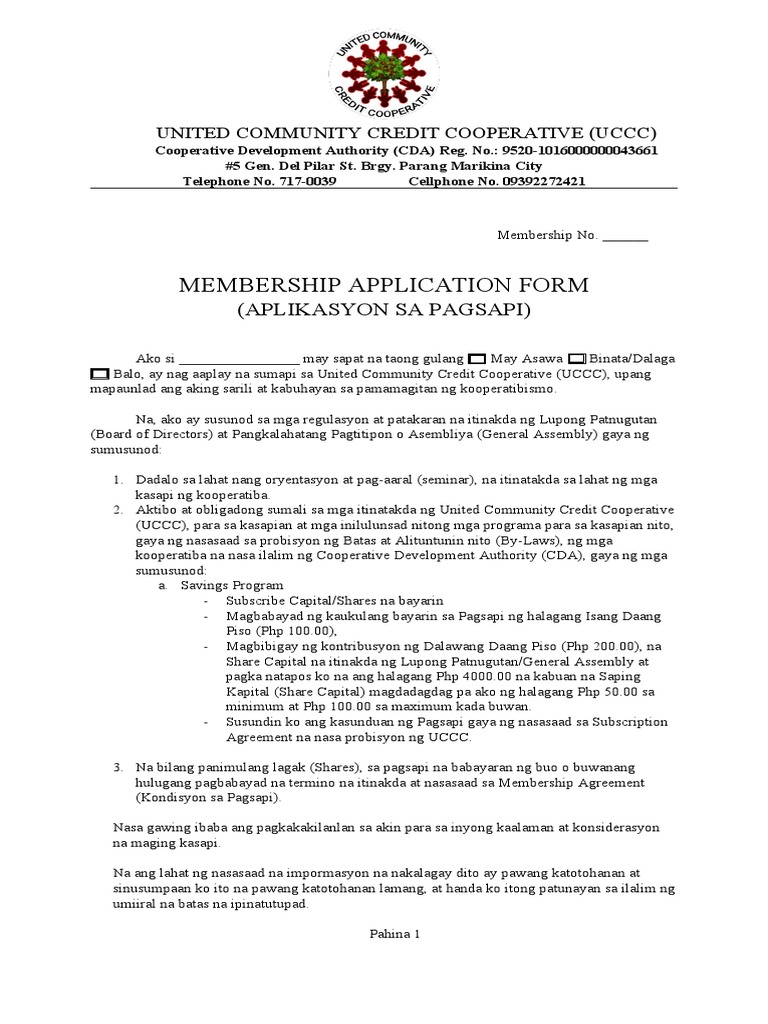 PSLLF Pormularyo Sa Pagsapi New | PDF