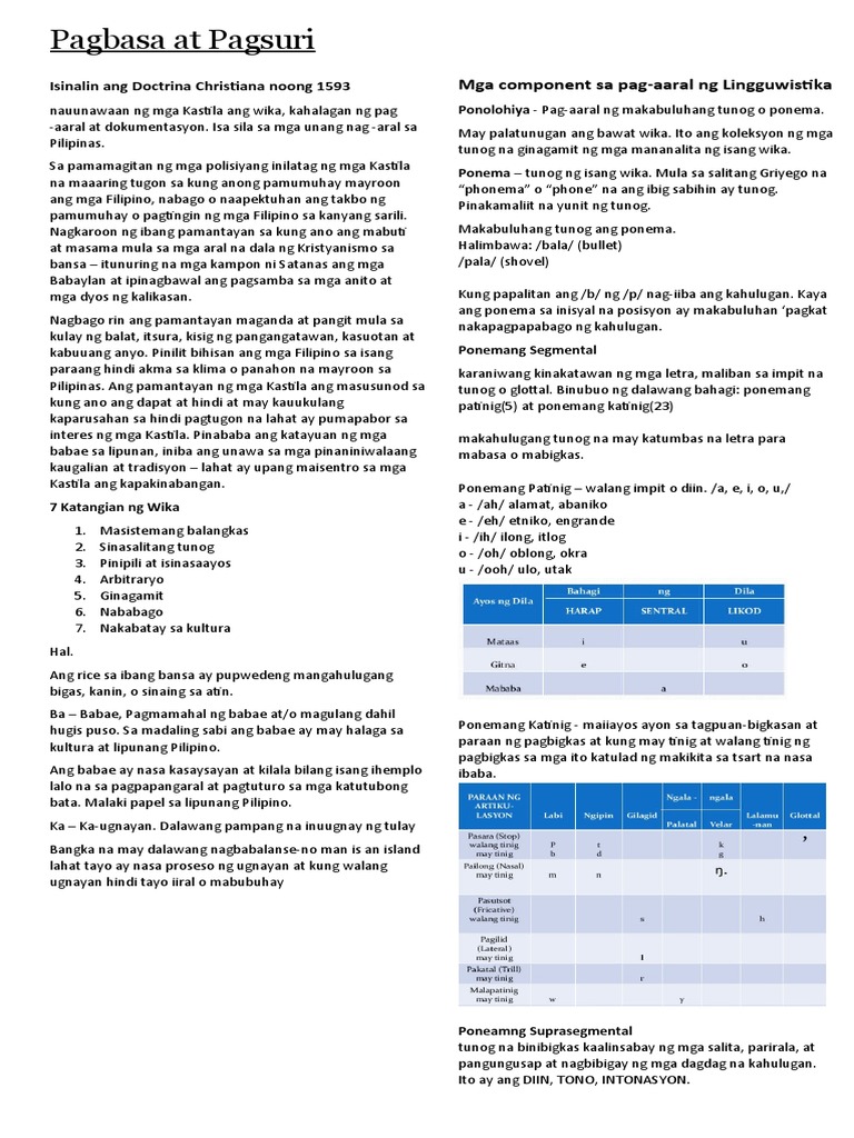 SOLUTION: Pagbasa at pagsuri - Studypool