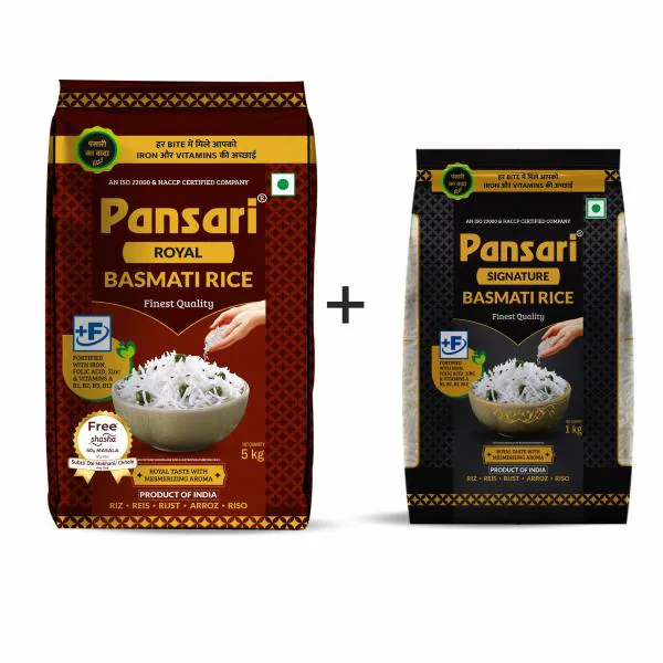 Pansari Basmati rice Combo Royal & Signature, Long Grain - (5+1Kg) - 6 ...