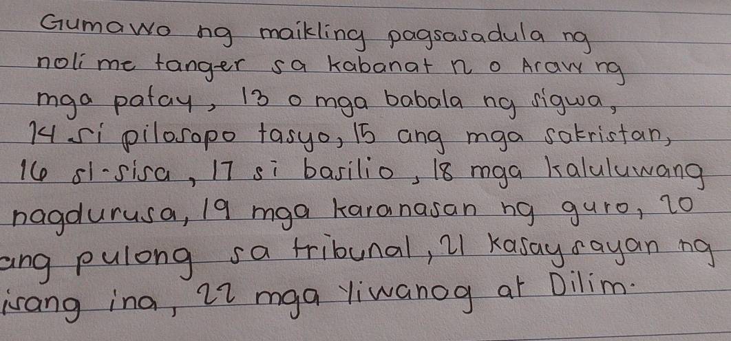 Solved: Gumawo ng maikling pagsasadula ng nolime tanger sa kabanat n o ...
