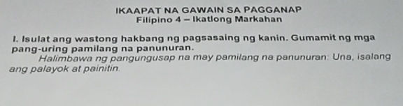 1 Isulat ang wastong hakbang ng pagsasaing | StudyX