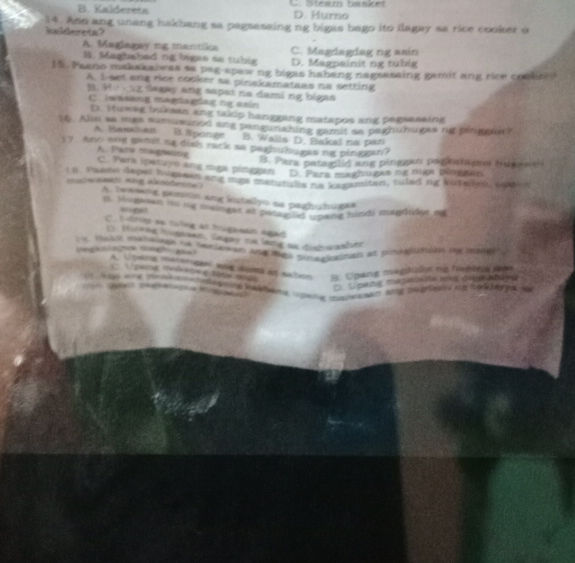 Tukuyin ang mga sumusunod na kagamitan na ginagamit sa pagsasaing ng biga..