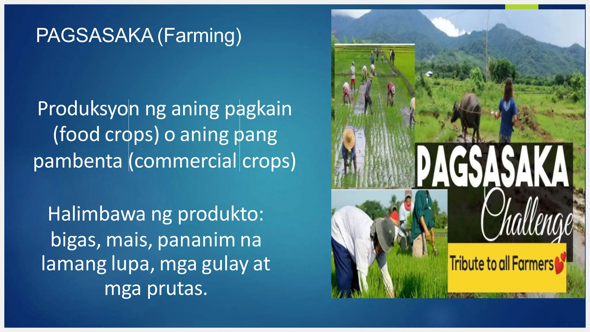 Kabuhayan ng mga Pilipino Noon Pagsasaka Pangingisda Pagtatanim mga gula..