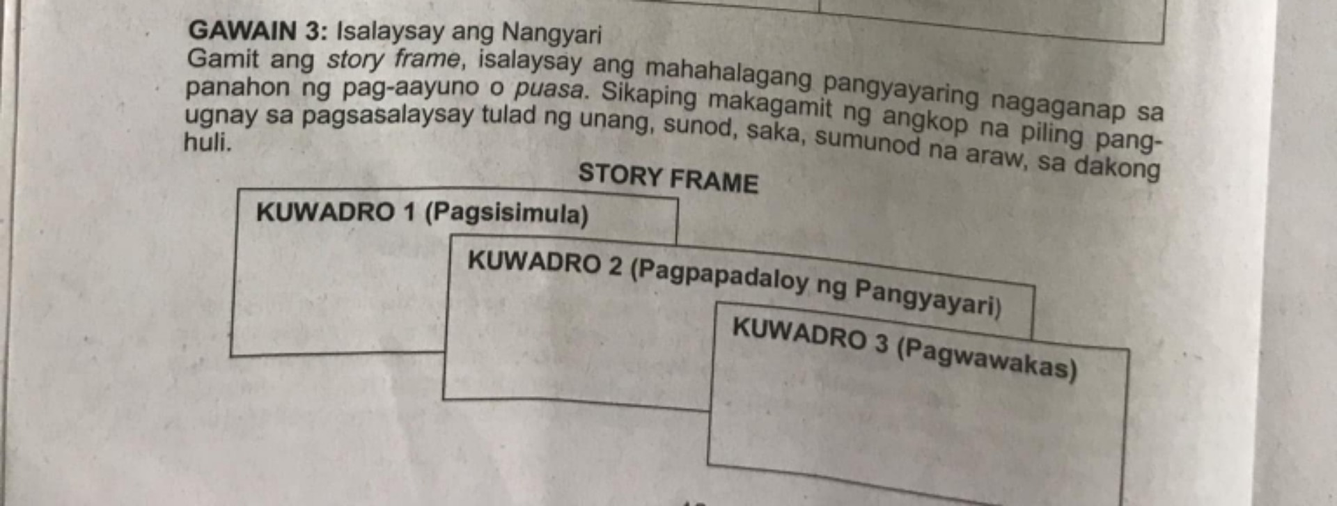 gawain 3 isalaysay ang nangyari gamit ang story frame isalaysay ang ...