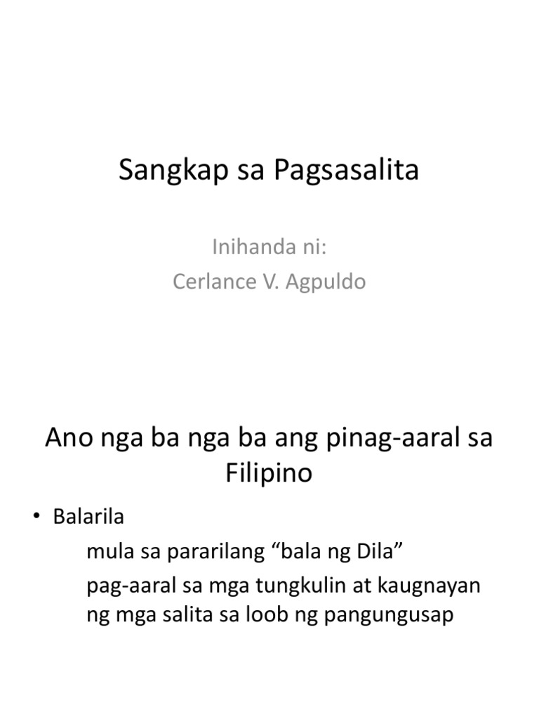 PANIMULANG LINGGWISTIKA : Ang Pagsasalita | PPTX