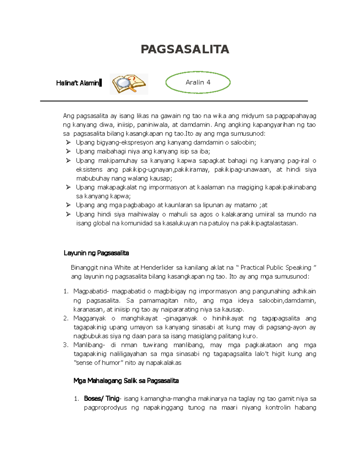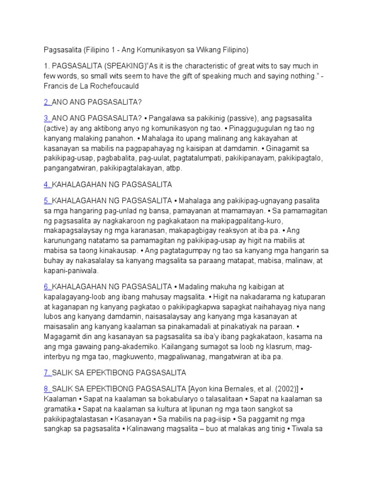 Pagsasalita at Pakikinig - Pagsasalita (Filipino 1 - Ang Komunikasyon ...