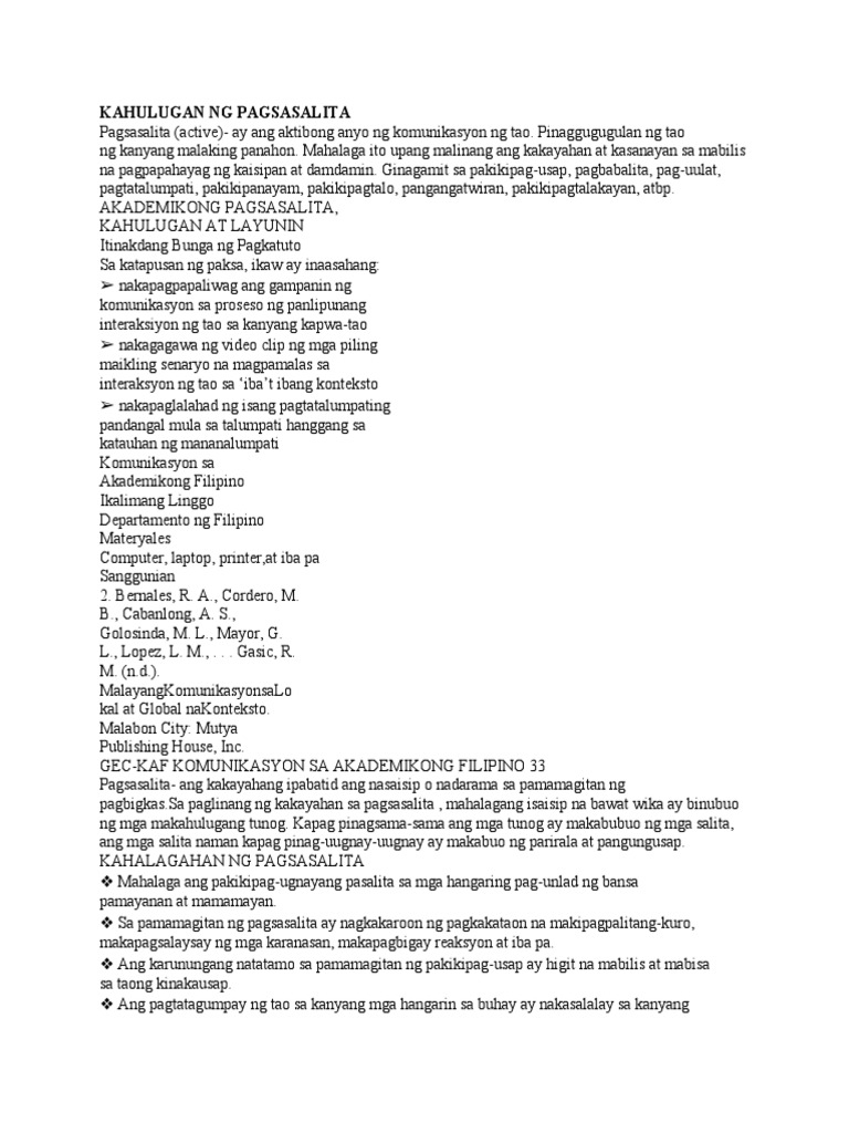 Kahulugan NG Pagsasalita | PDF