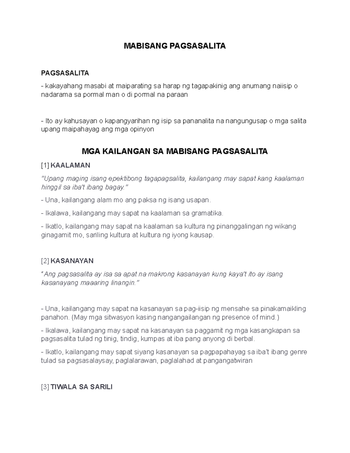 Mga Kasanayan Sa Pagsasalita | PDF