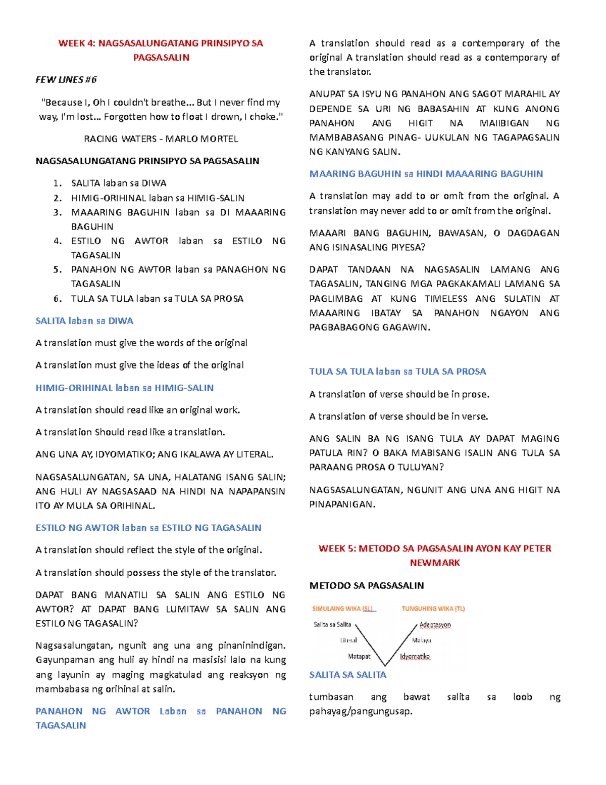 Fil 111 Mga Nagsasalungatang Paraan Sa Pagsasaling-Wika Handouts | PDF