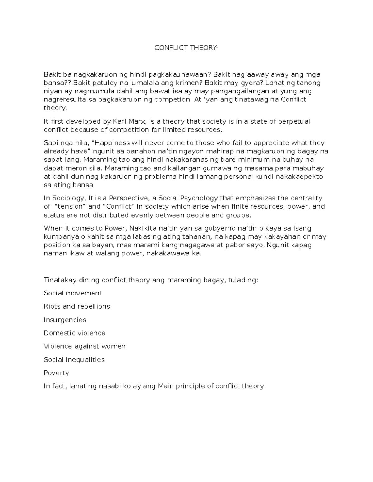 Conflict Theory - CONFLICT THEORY- Bakit ba nagkakaruon ng hindi ...