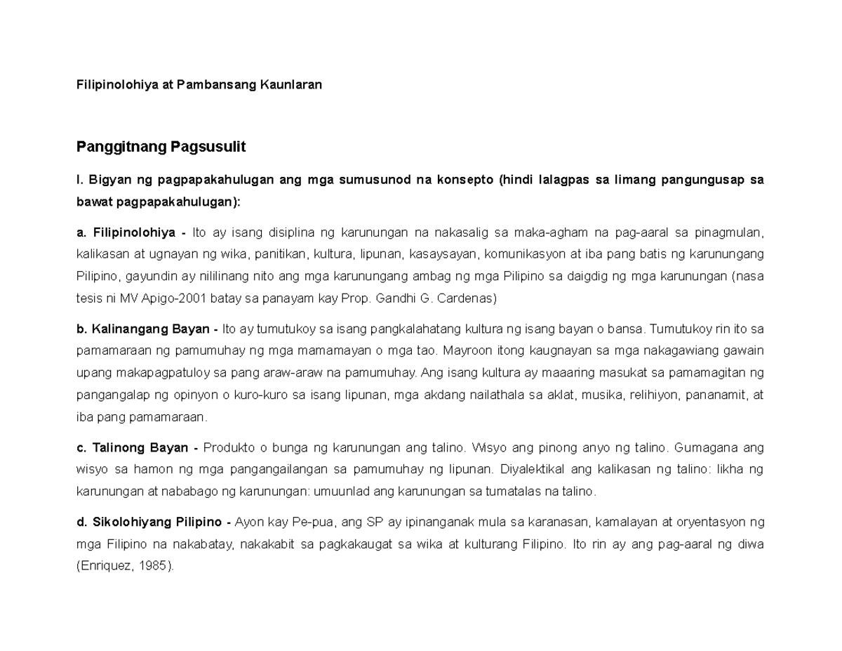 Filipinolohiya Panggitnang Pagsusulit - Filipinolohiya at Pambansang ...
