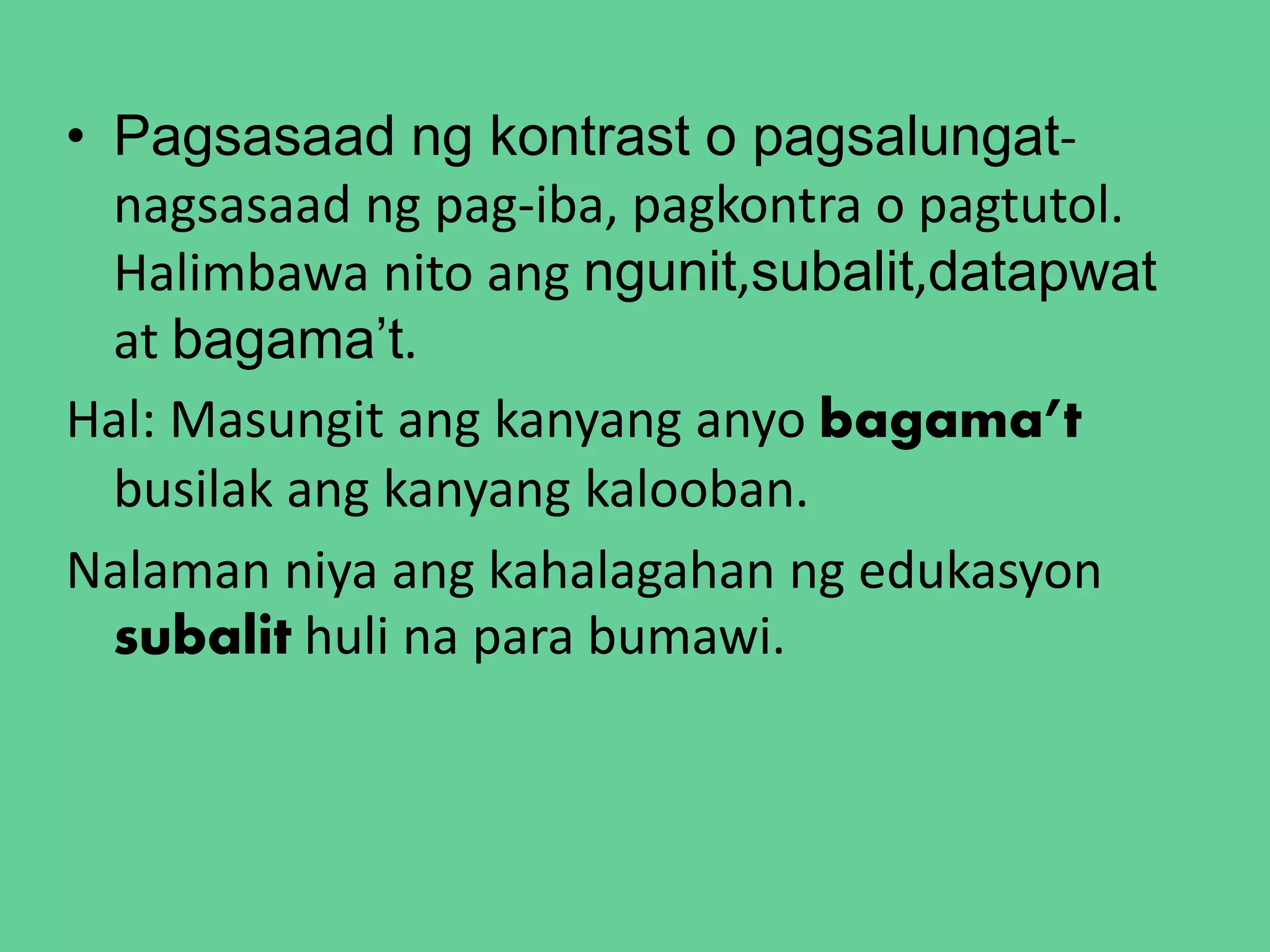Contrast Words in Tagalog — Pangatnig na Painsay (subalit, ngunit ...