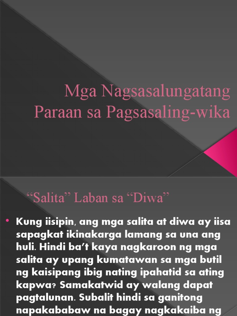 Mga Nagsasalungatang Paraan Sa Pagsasaling - Wika Mula Sa Iba't Ibang ...