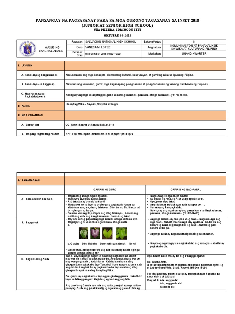 Pansangay Na Pagsasanay para Sa Mga Gurong Tagasanay Sa Inset 2018 ...