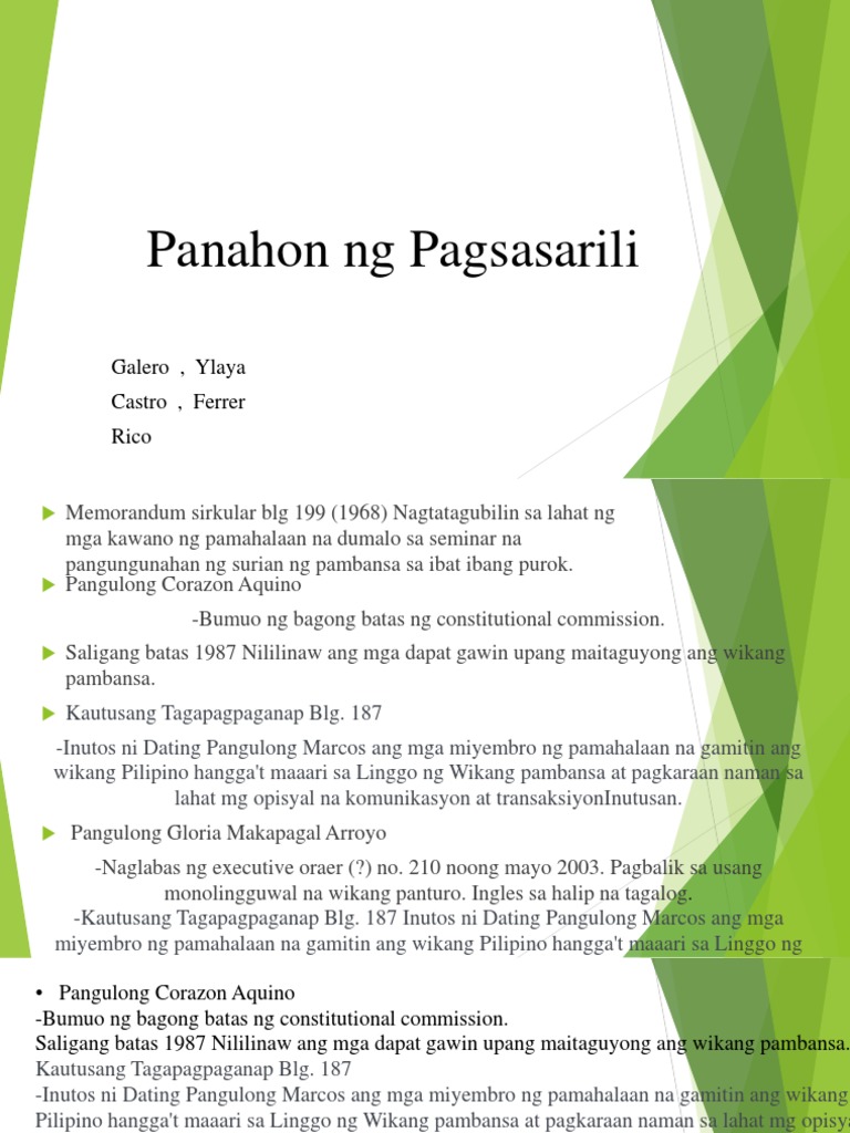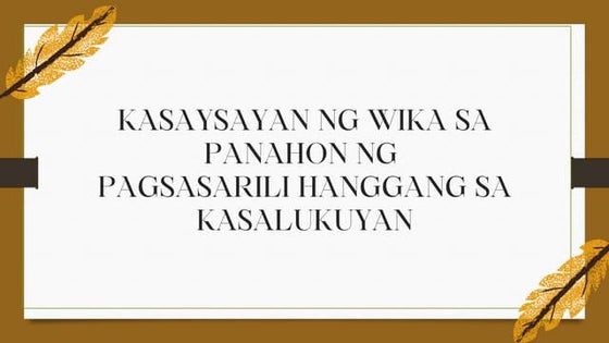 WIKA SA PANAHON NG PAGSASARILI by Vicente David on Prezi
