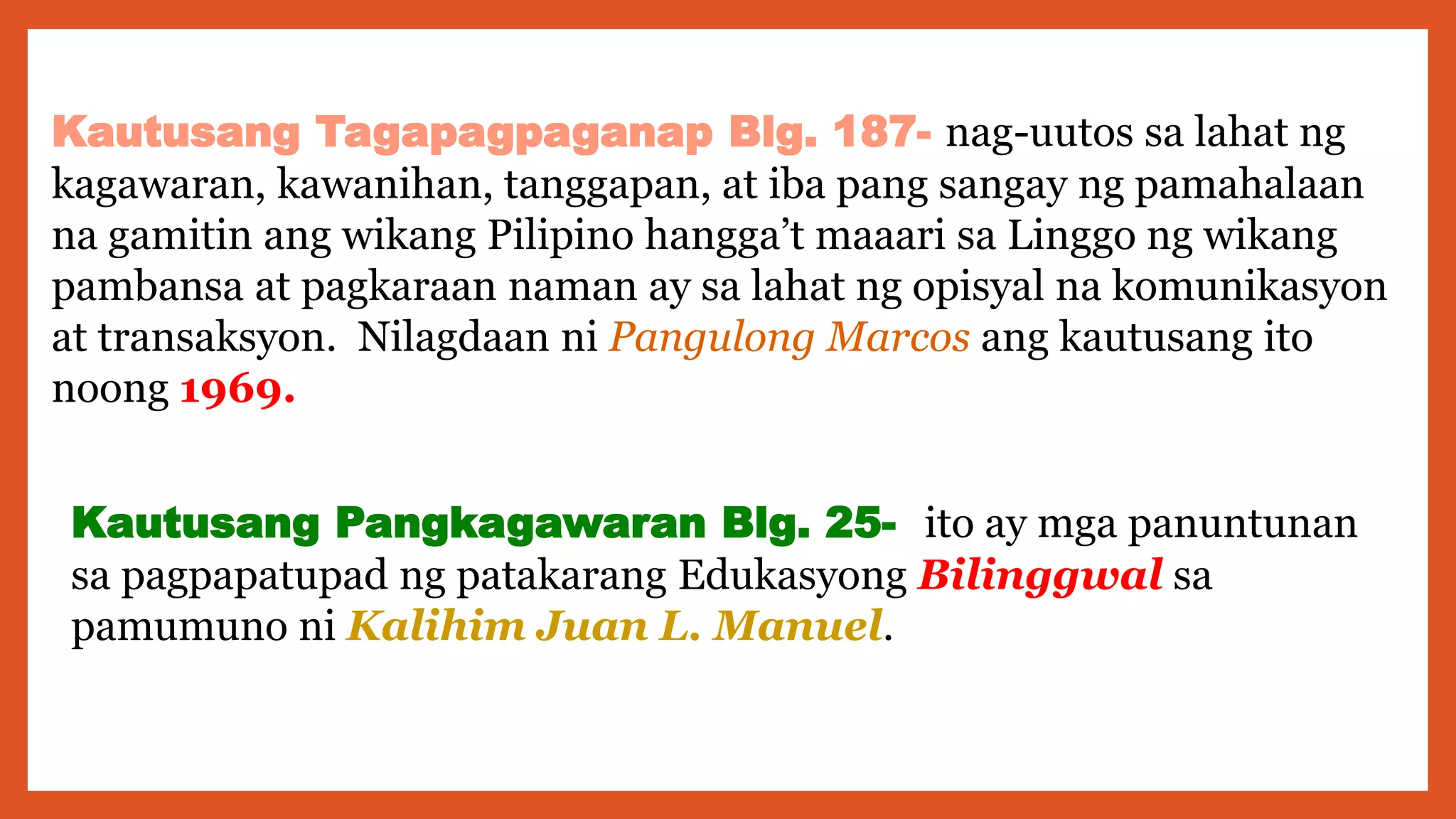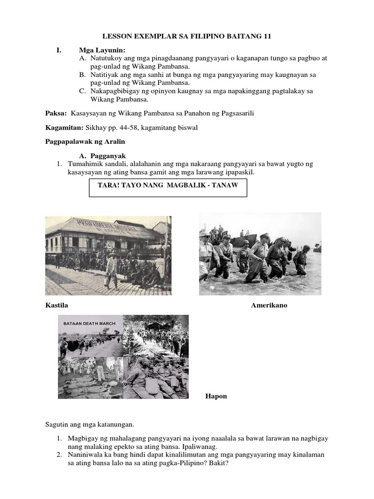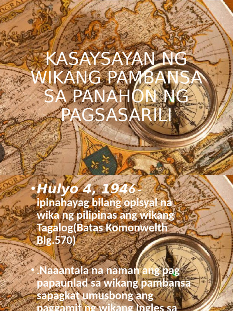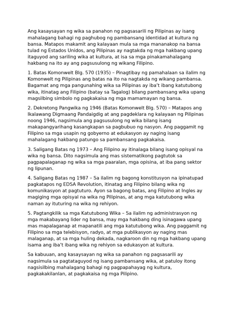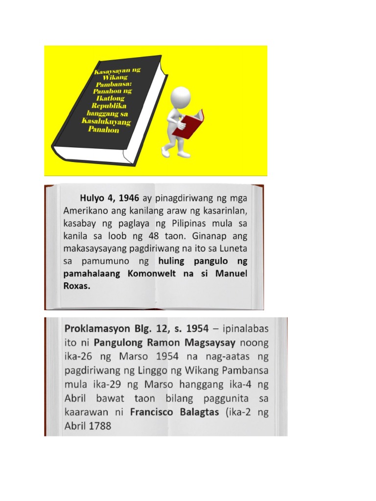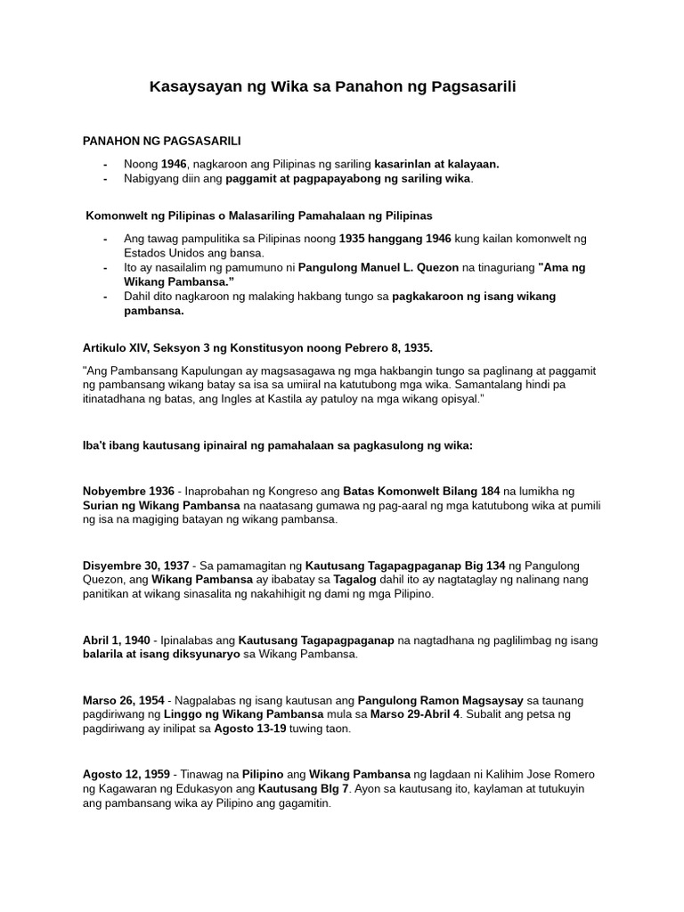 Kasaysayan ng Wikang Pambansa panahon ng pagsasarili hanggang sa ...
