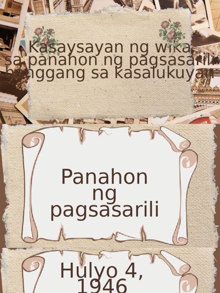 Wikang Filipino Sa Panahon Ng Pagsasarili At Kasalukuyan