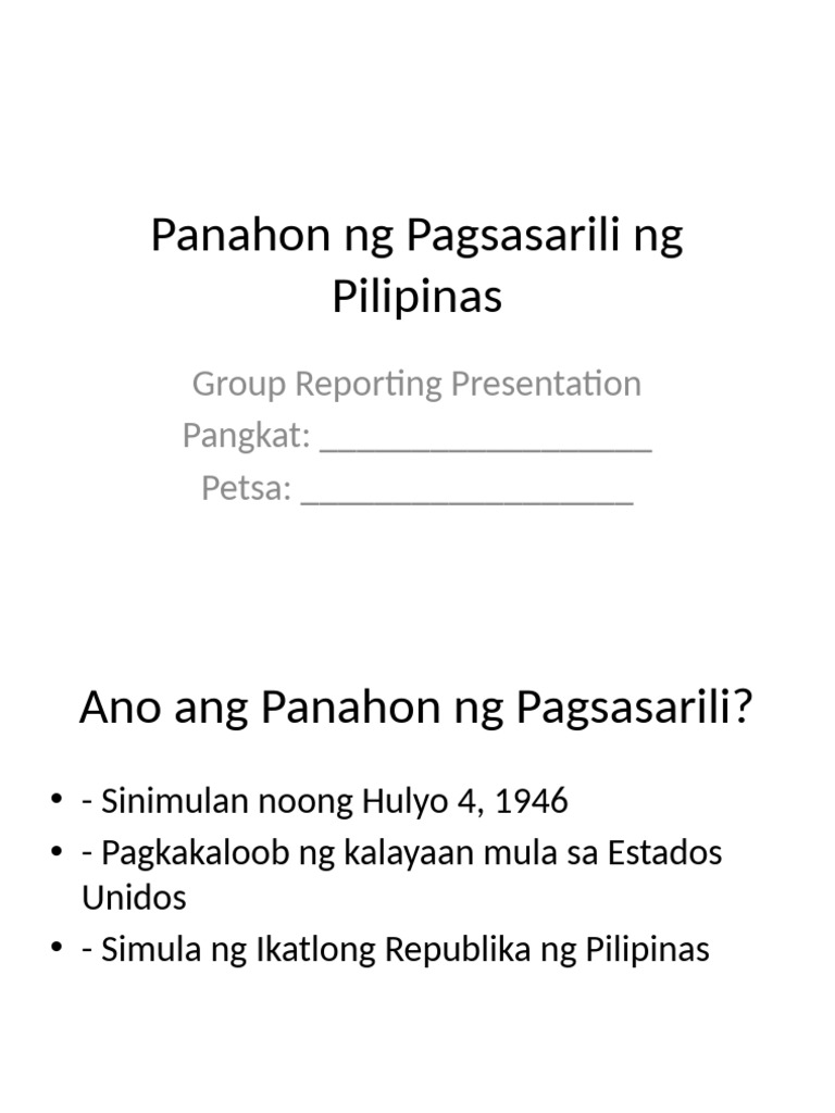 Panahon ng Pagsasarili hanggang sa kasalukuyan .pptx - Panahon ng ...