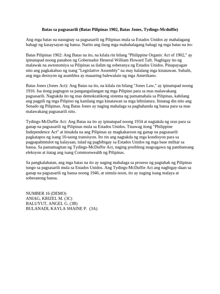 16.+Batas+sa+pagsasarili+Batas+Pilipinas+1902,+Batas+Jones,+Tydings ...