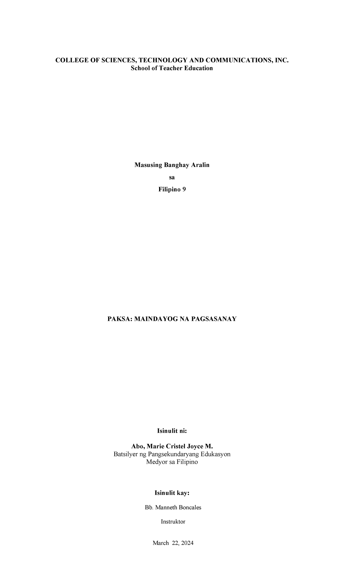 Maindayog-na-pagsasayaw - COLLEGE OF SCIENCES, TECHNOLOGY AND ...