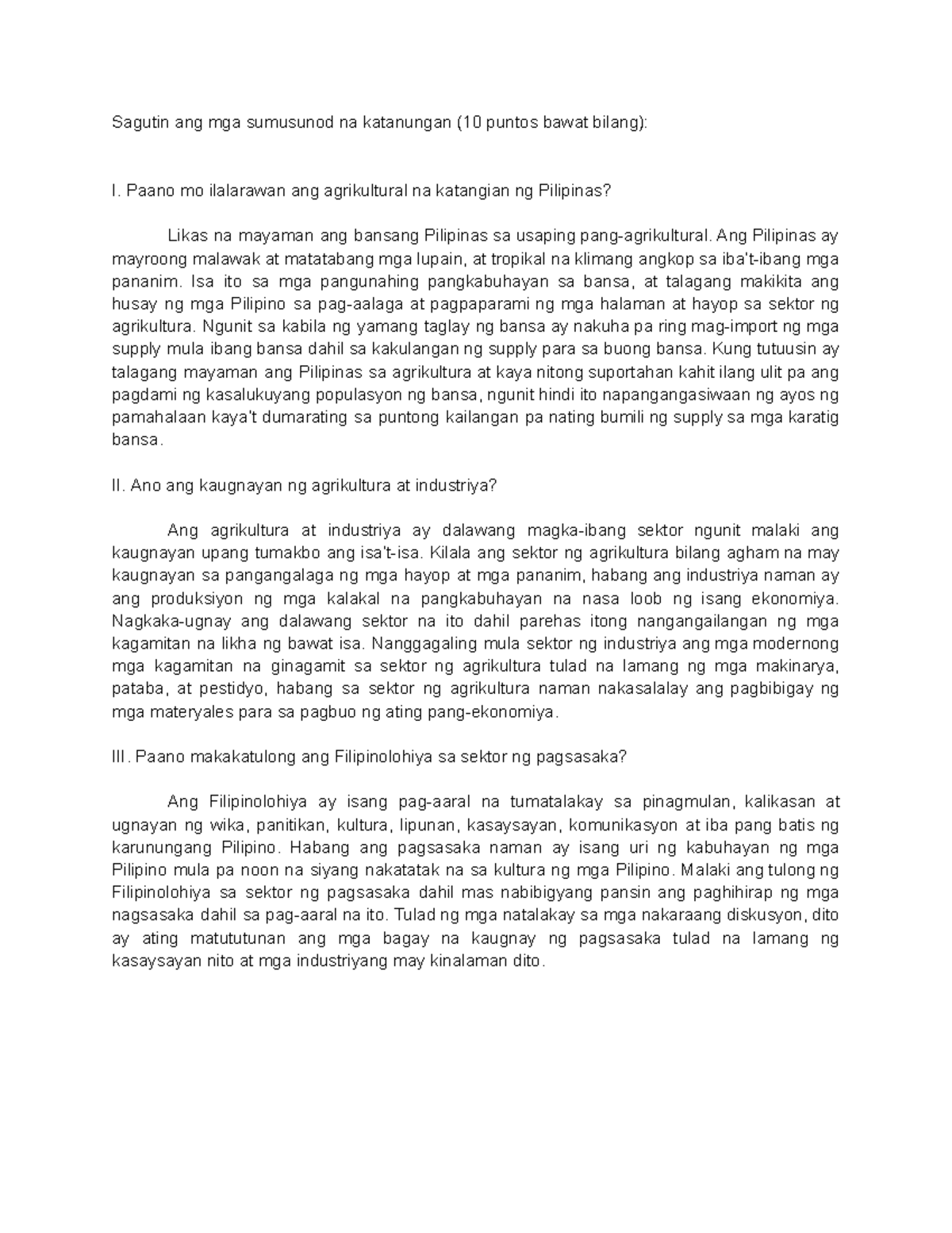 Pagsasaka at Agrikultura - Sagutin ang mga sumusunod na katanungan (10 ...
