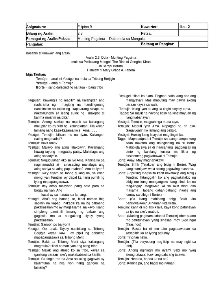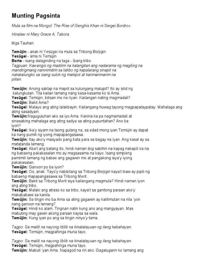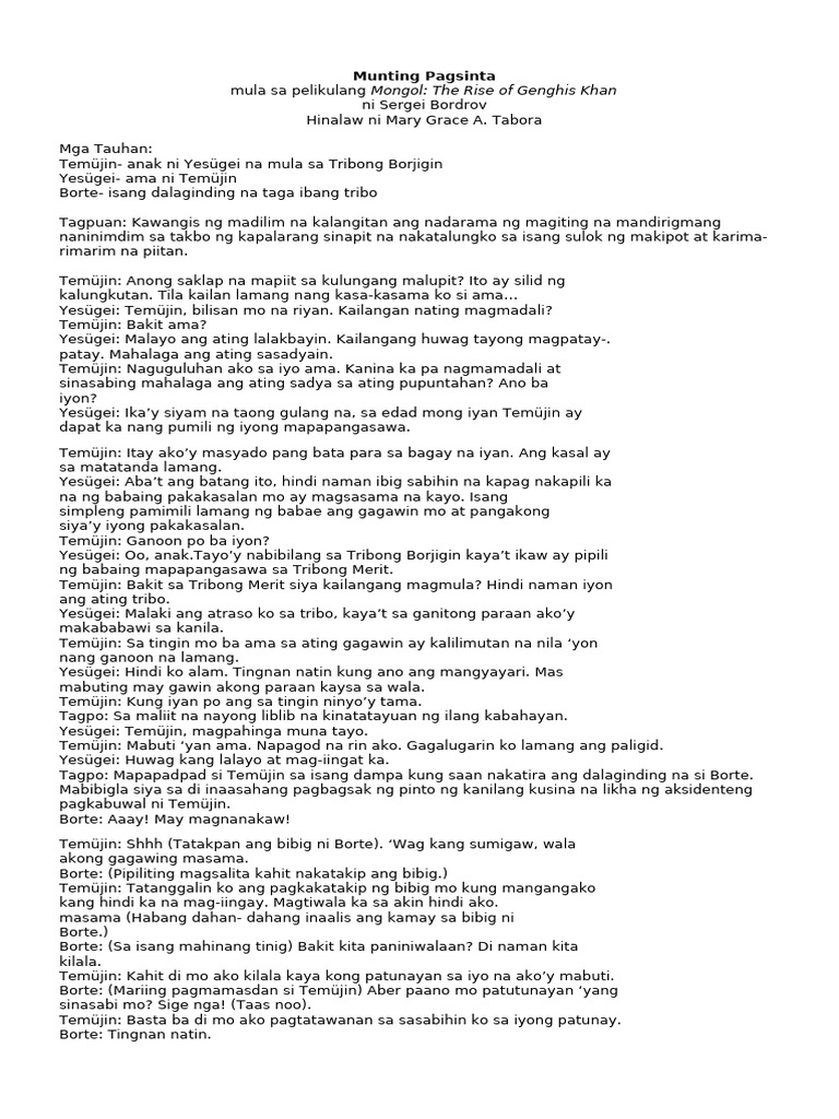 Munting Pagsinta Mula Sa Pelikulang Mongol | PDF