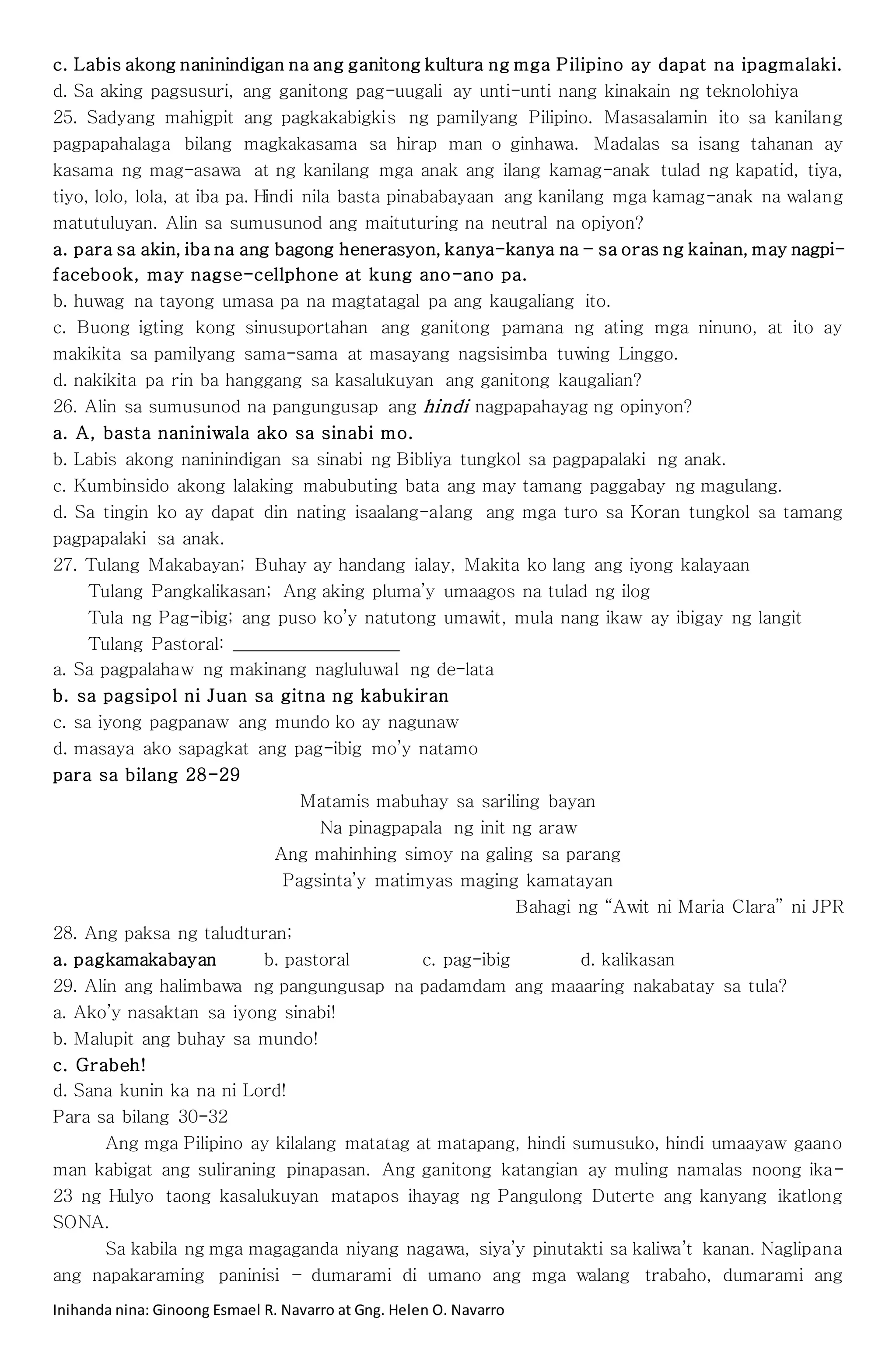 Unang markahang pagsusulit fil 9 w/ TOS | DOCX