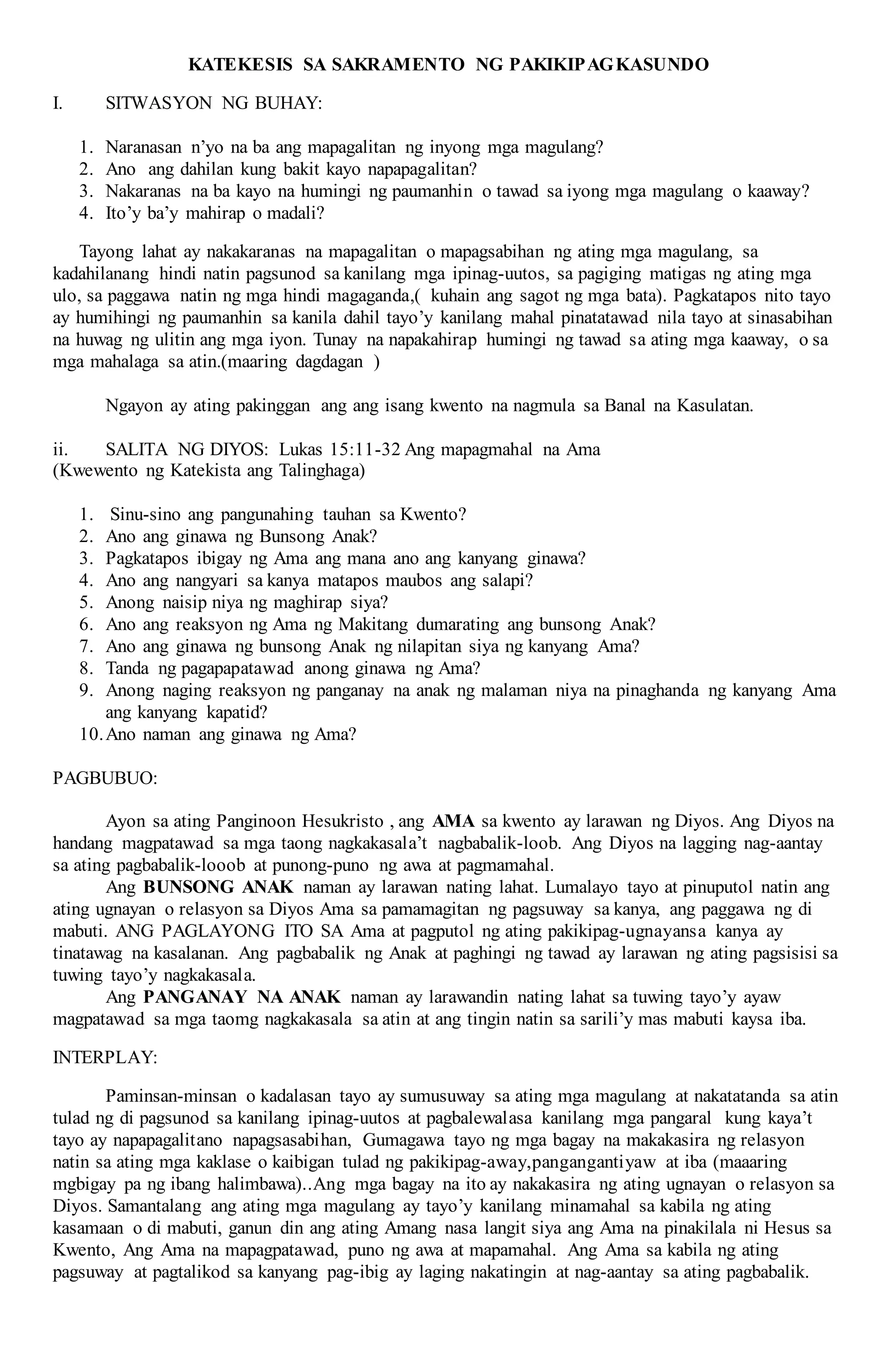 Katekesis sa Sakramento ng pakikipagkasundo | DOCX