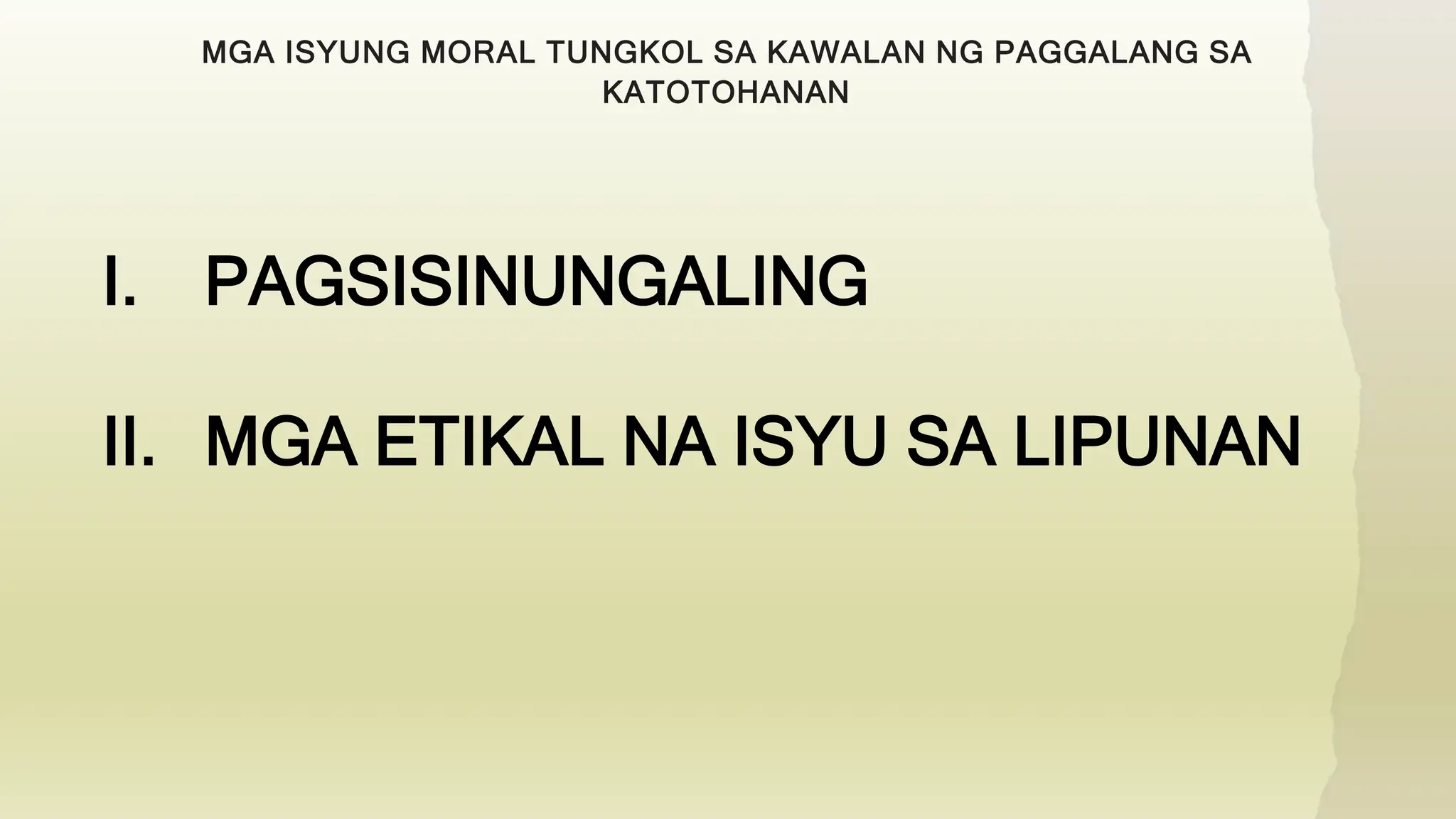 Mga Isyung Moral sa Kawalan ng Paggalang sa Katotohanan | PPTX