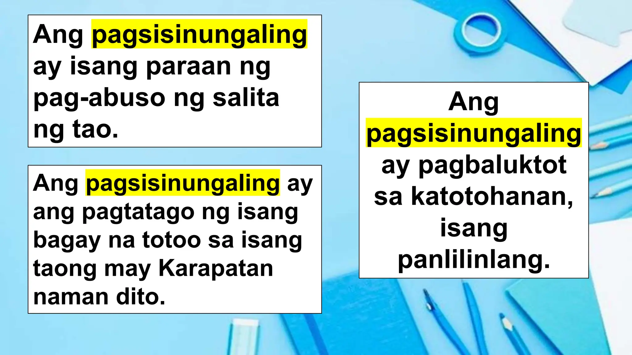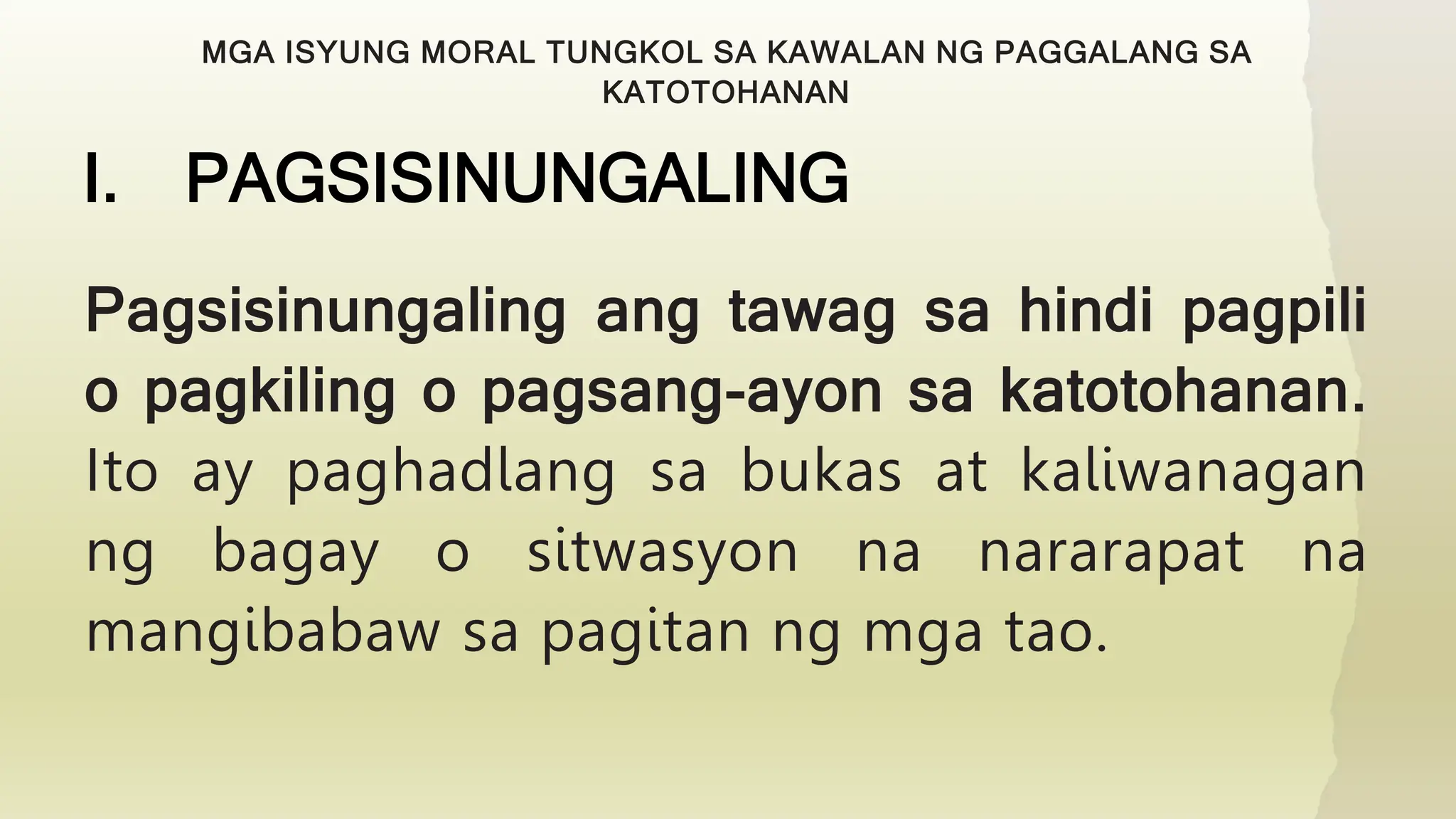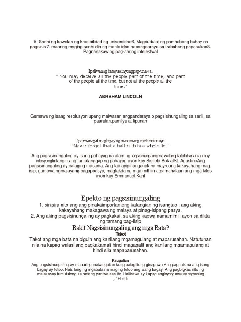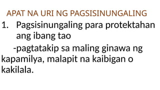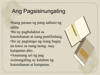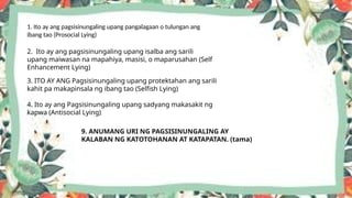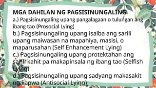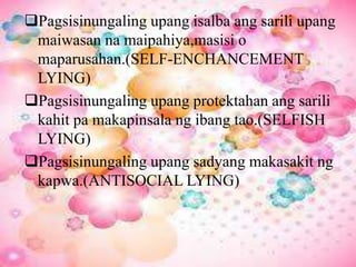 ang pagsisinungaling ay ang hindi pagkiling o pagsang-ayon sa ...