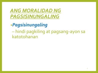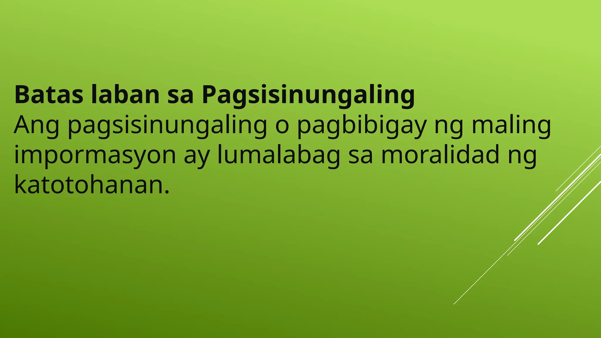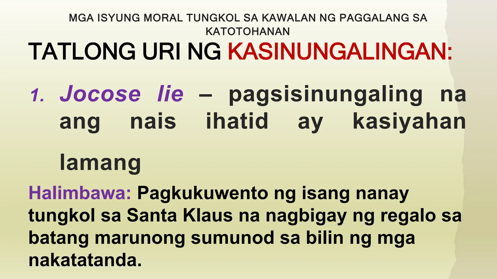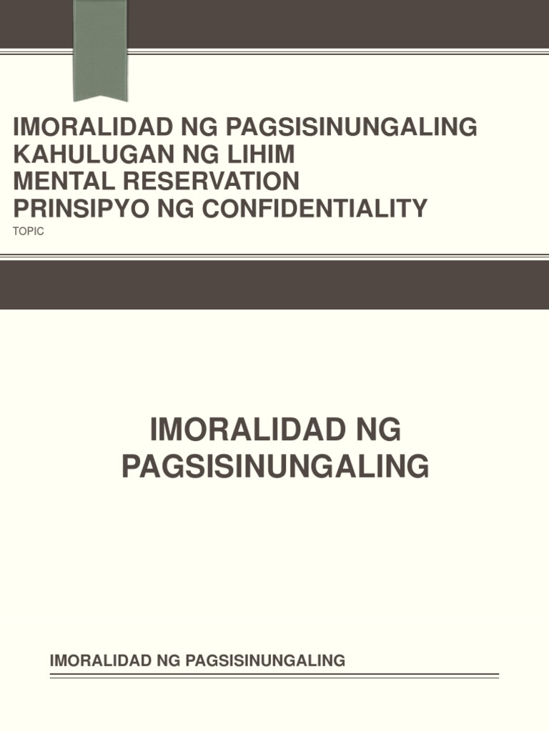 ang pagsisinungaling ay ang hindi pagkiling o pagsang-ayon sa ...