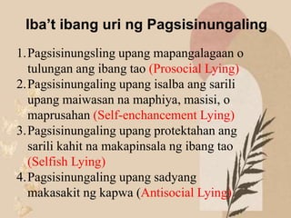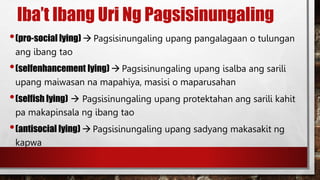 IBA'T IBANG URI NG PAGSISINUNGALING || WAG SANAYIN ANG SARILI SA ...