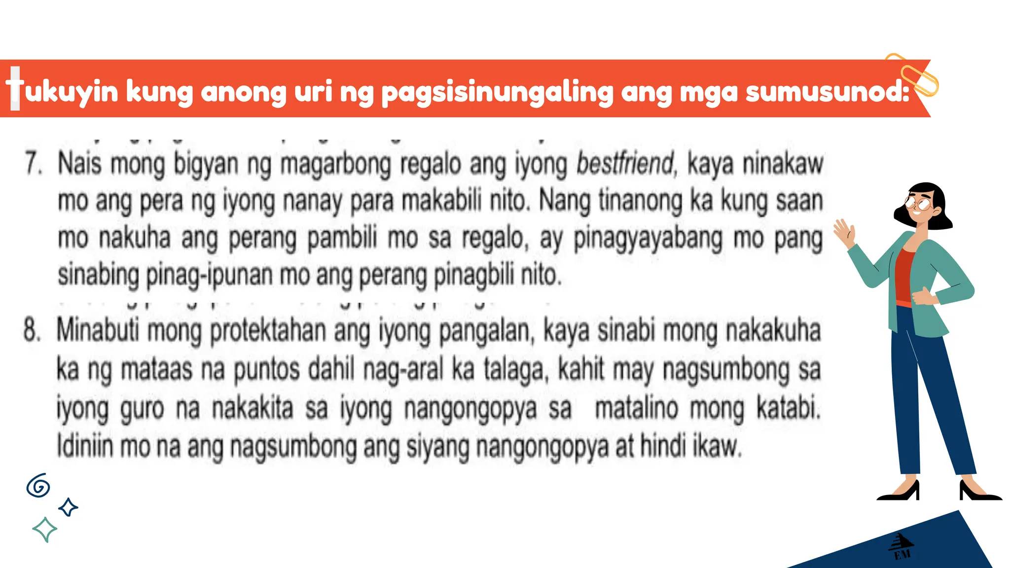 Panuto: Tukuyin kung anong uri ng pagsisinungaling ang pinapakita sa ...
