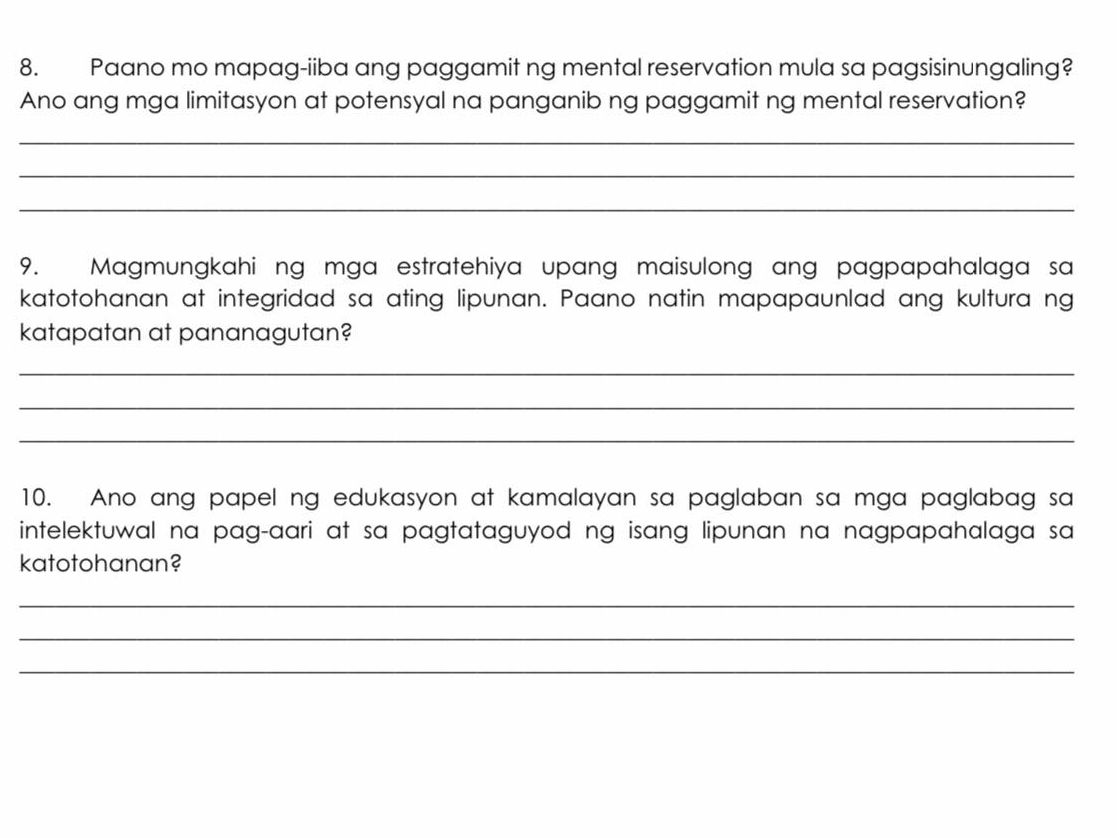 Solved: a. Pagsisinungaling upang pangalagaan o tulungan ang ıbang tao ...