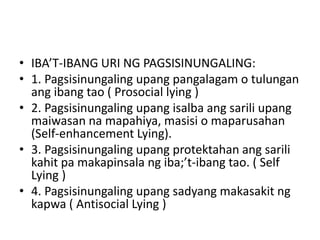 ang pagsisinungaling ay ang hindi pagkiling o pagsang-ayon sa ...