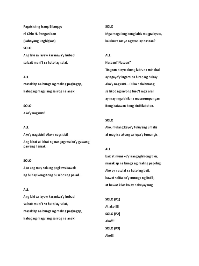 Pagsisisi NG Isang Bilanggo Ni Cirio H. Panganiban (Sabayang Pagbigkas ...