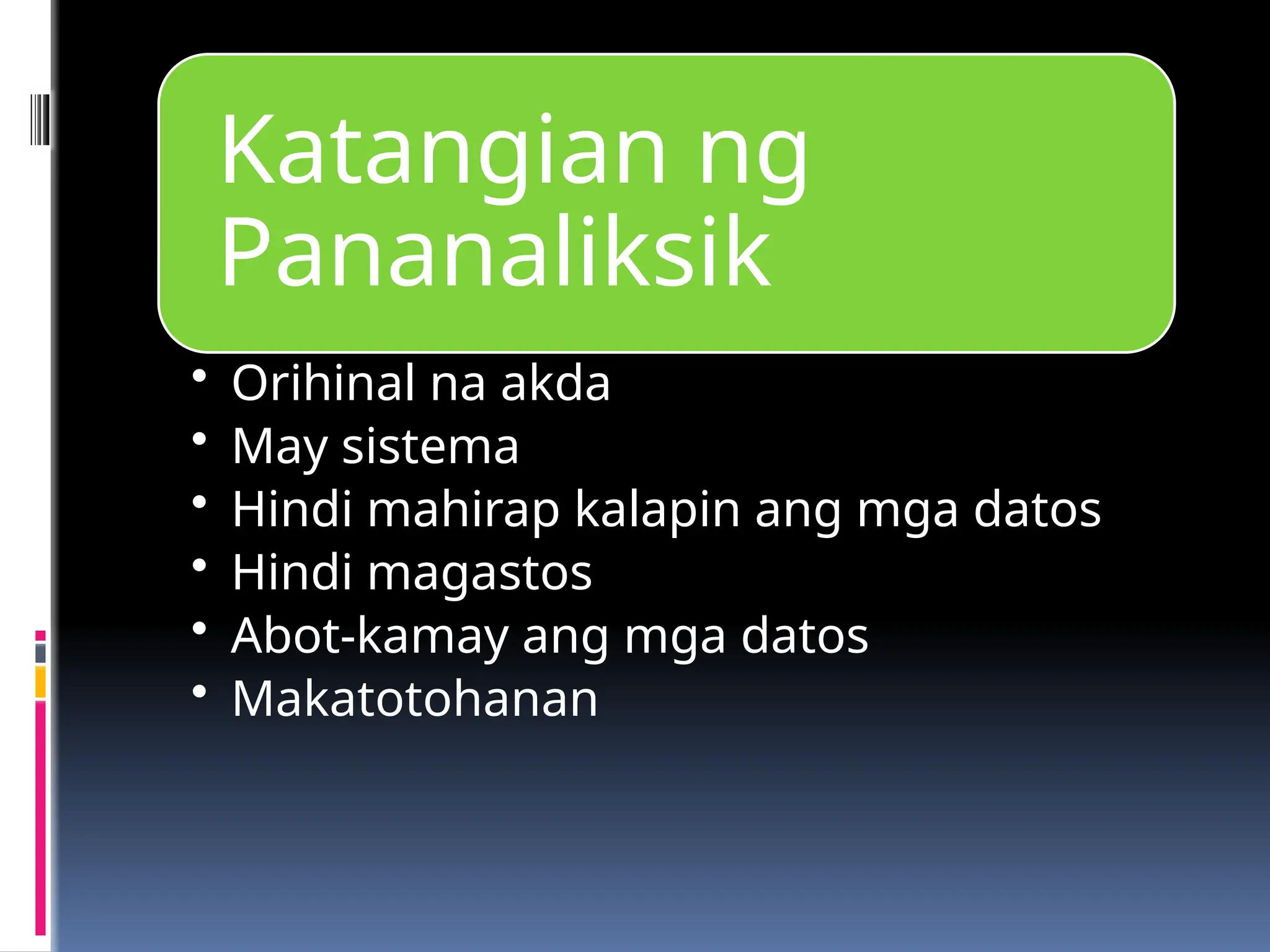 ANG KAHULUGAN, LAYUNIN, KATANGIAN AT GAMIT NG PANANALIKSIK.pptx