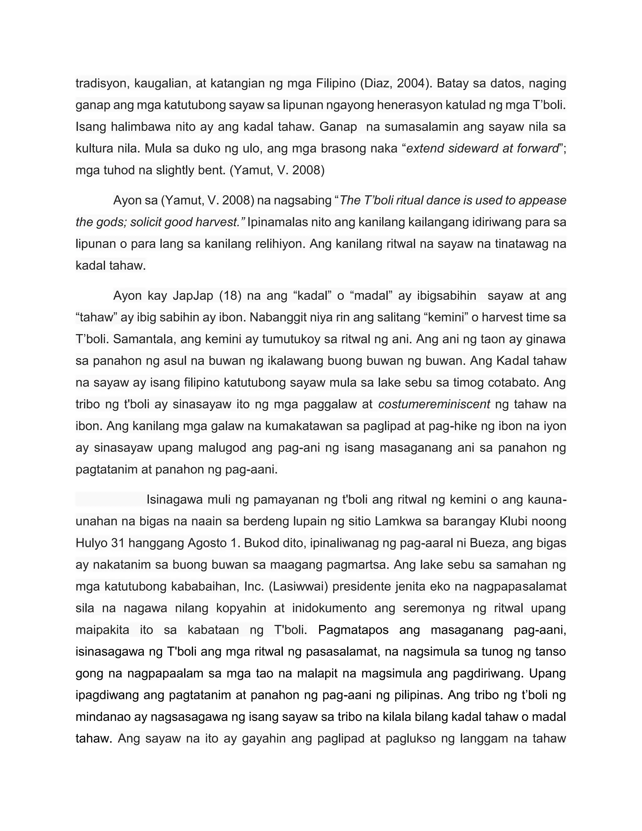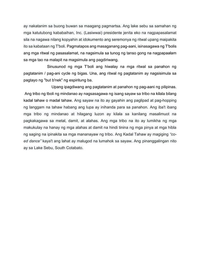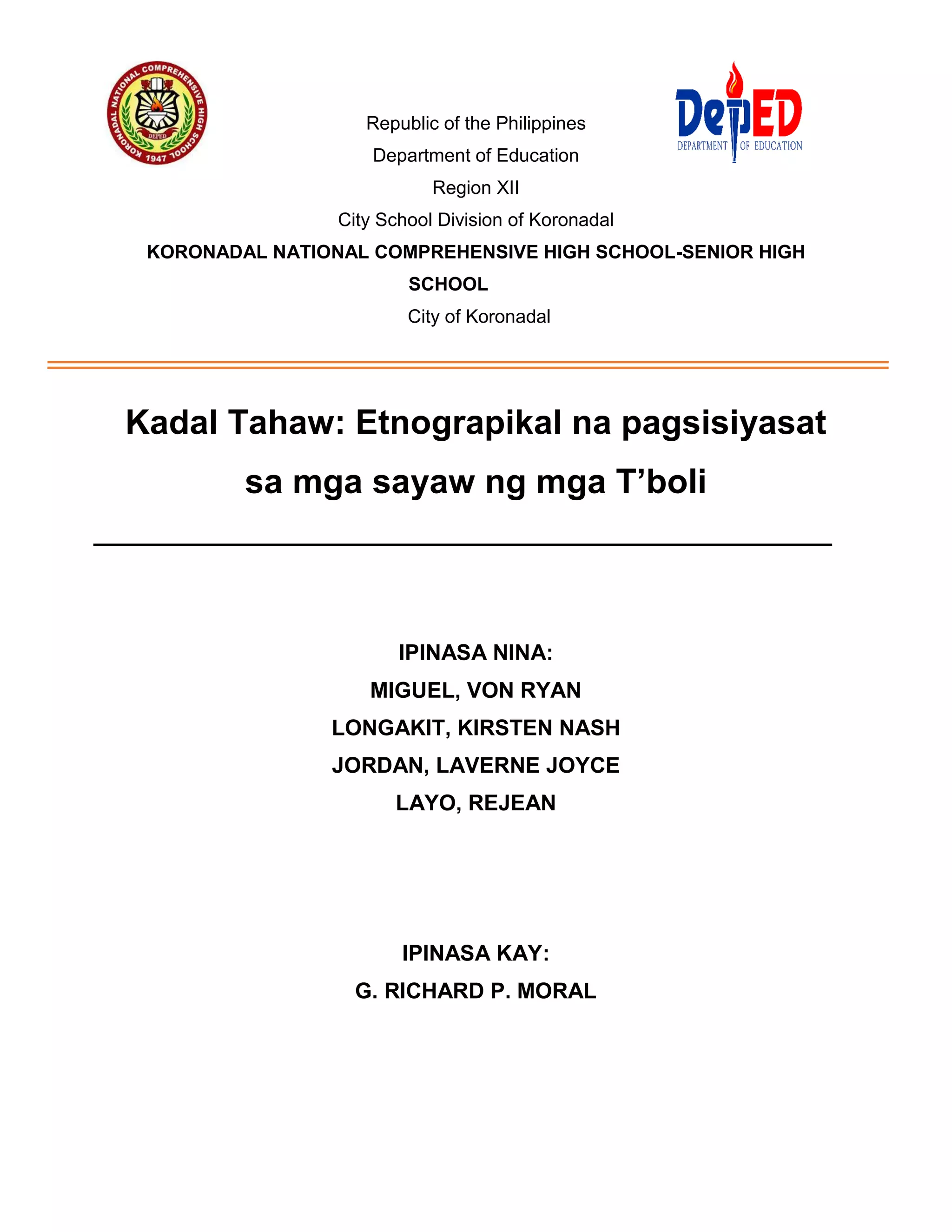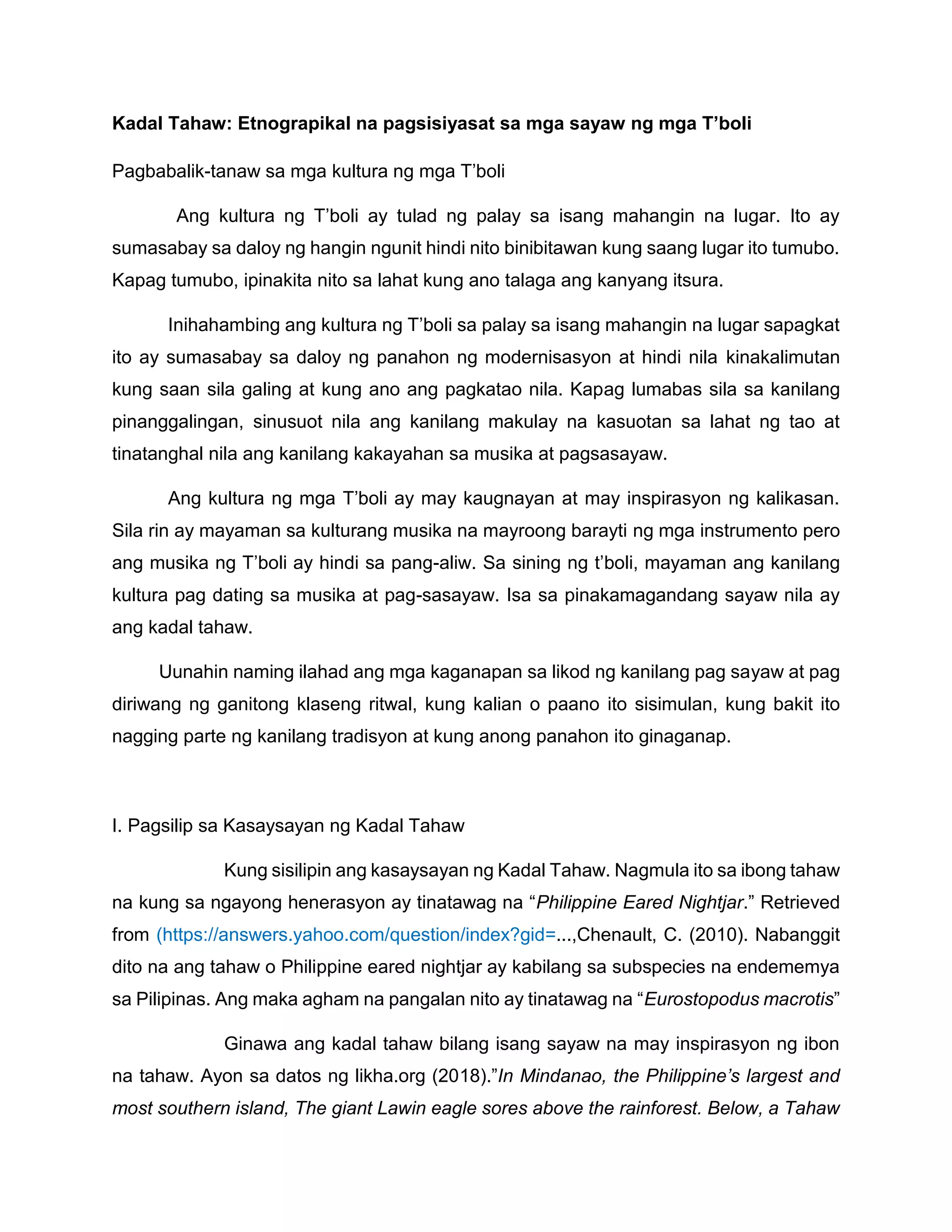 Kadal Tahaw: Etnograpikal na pagsisiyasat sa mga sayaw ng mga T'boli | PDF