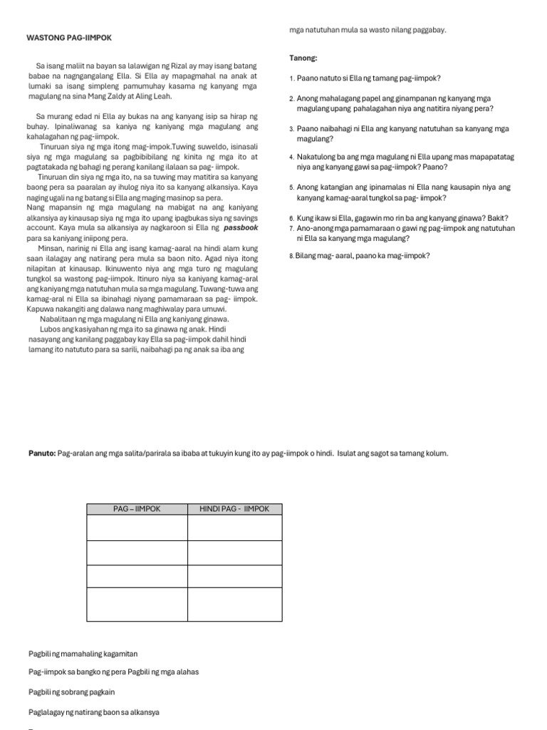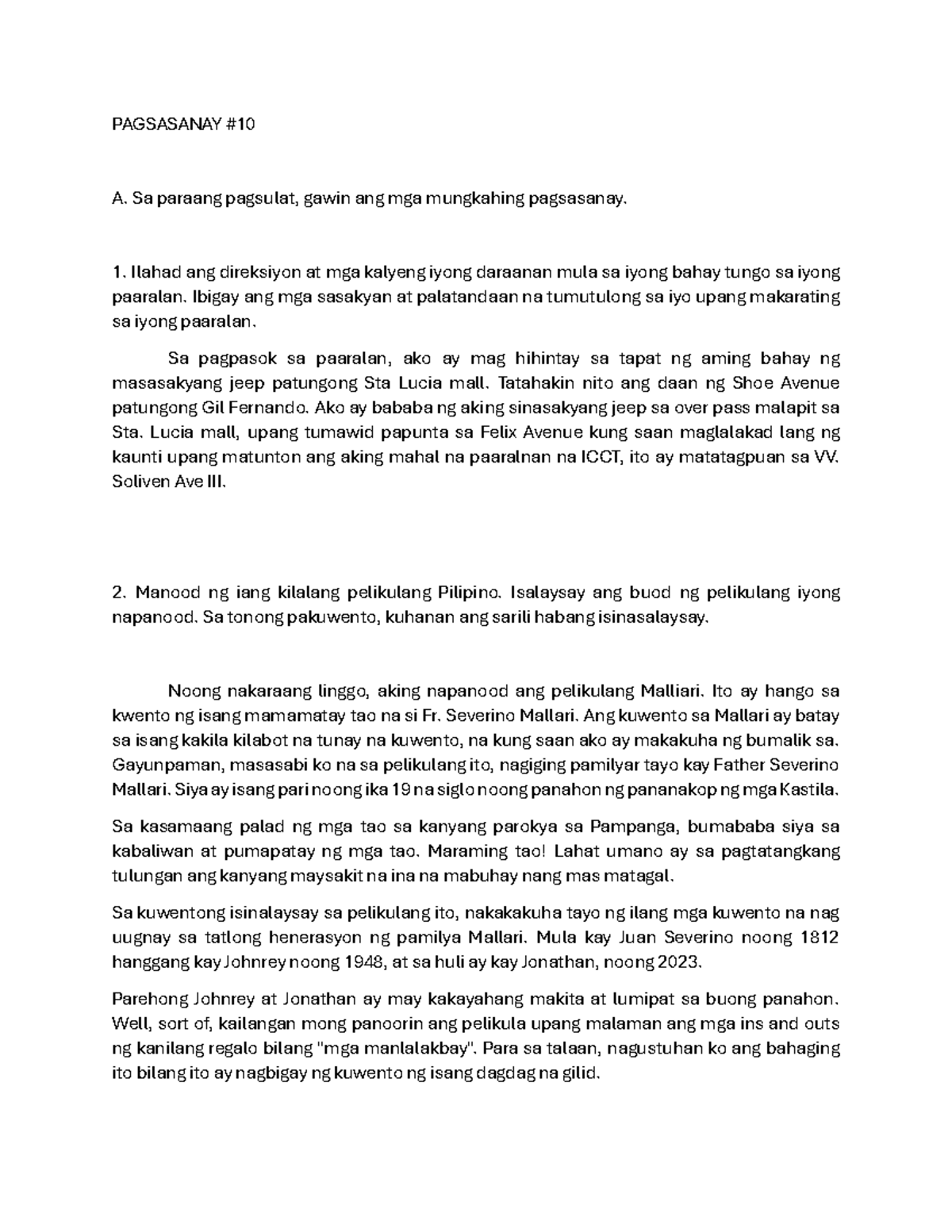 Pagsasanay 10 - Assignment - PAGSASANAY A. Sa paraang pagsulat, gawin ...