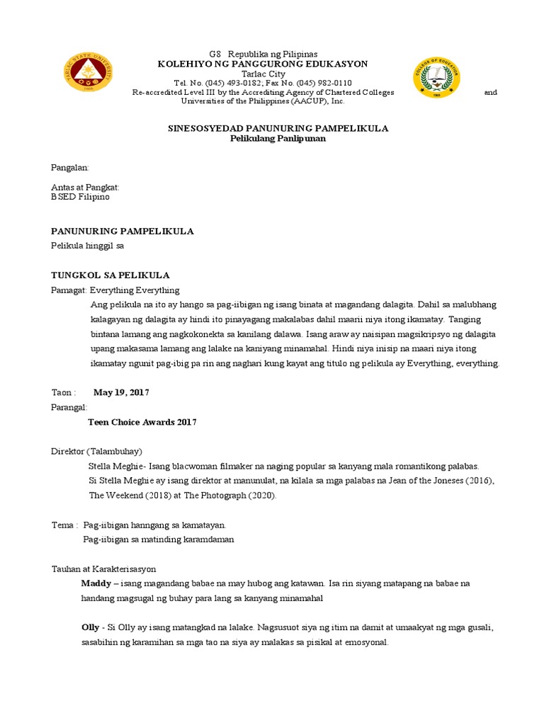 Soslit Assignment - Name: Rovie Grace G. Rivera Date: 08-23- Year ...