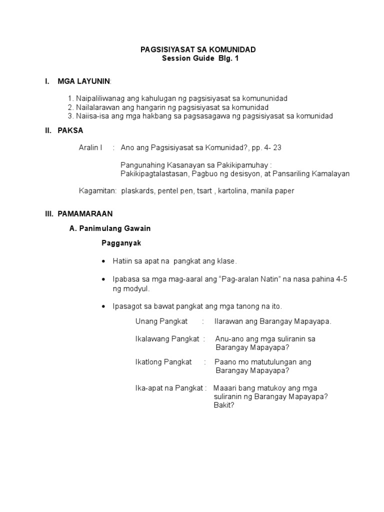 Session Guide 1 - Pagsisiyasat Sa Komunidad | PDF