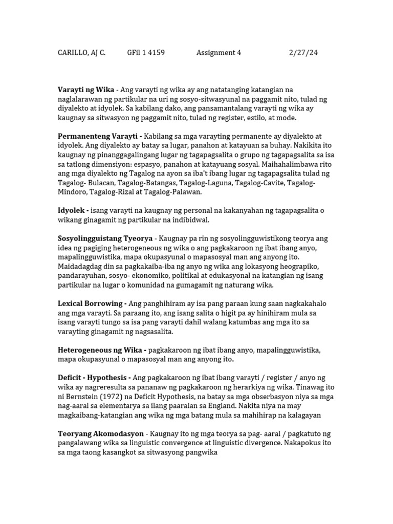 1st Sem (PT) - Assignment - Performance Task: Ikaw ay isa sa mga ...