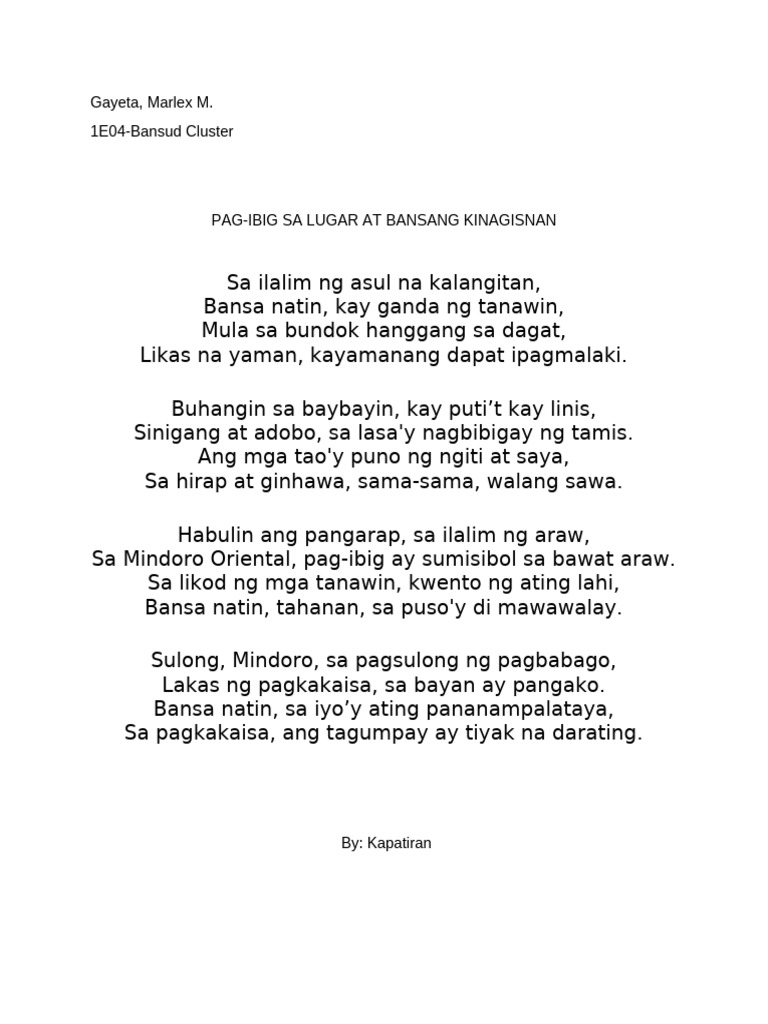 SOLUTION: Tula tungkol sa kalikasan buhay pagsubok pag asa - Studypool