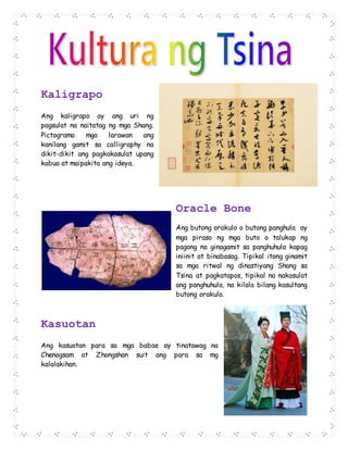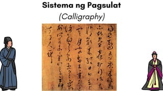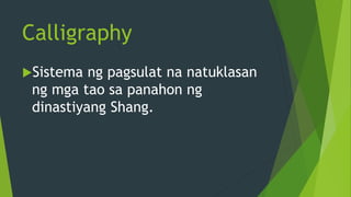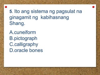 3. Kung ang sistema ng pagsulat sa Shang ay Calligraphy,ano naman sa ...