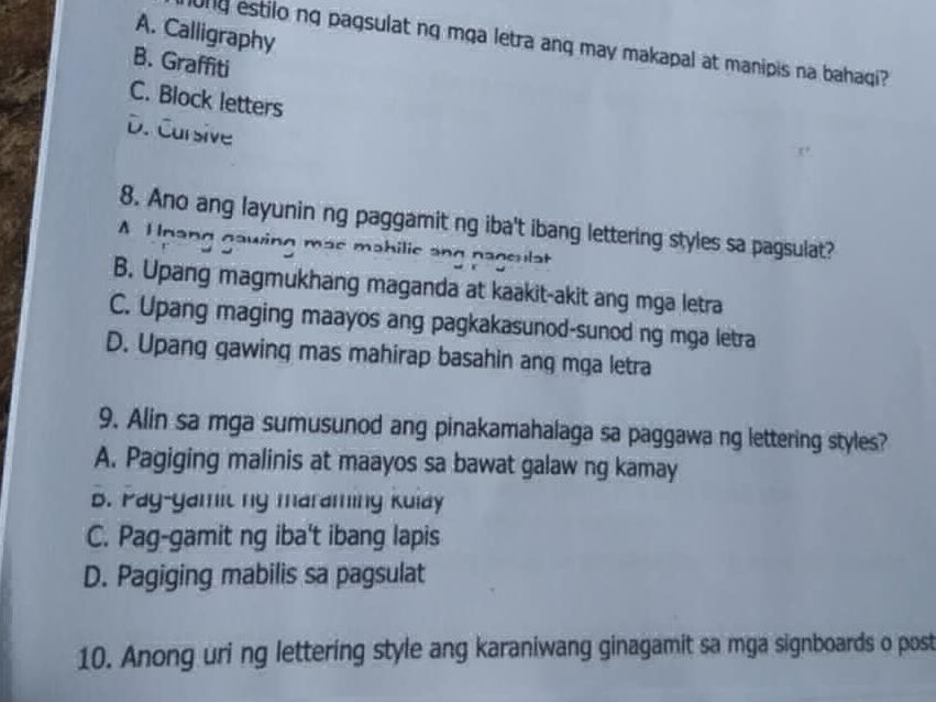 Ano ang estilo ng pagsulat ng mga letra ang | StudyX