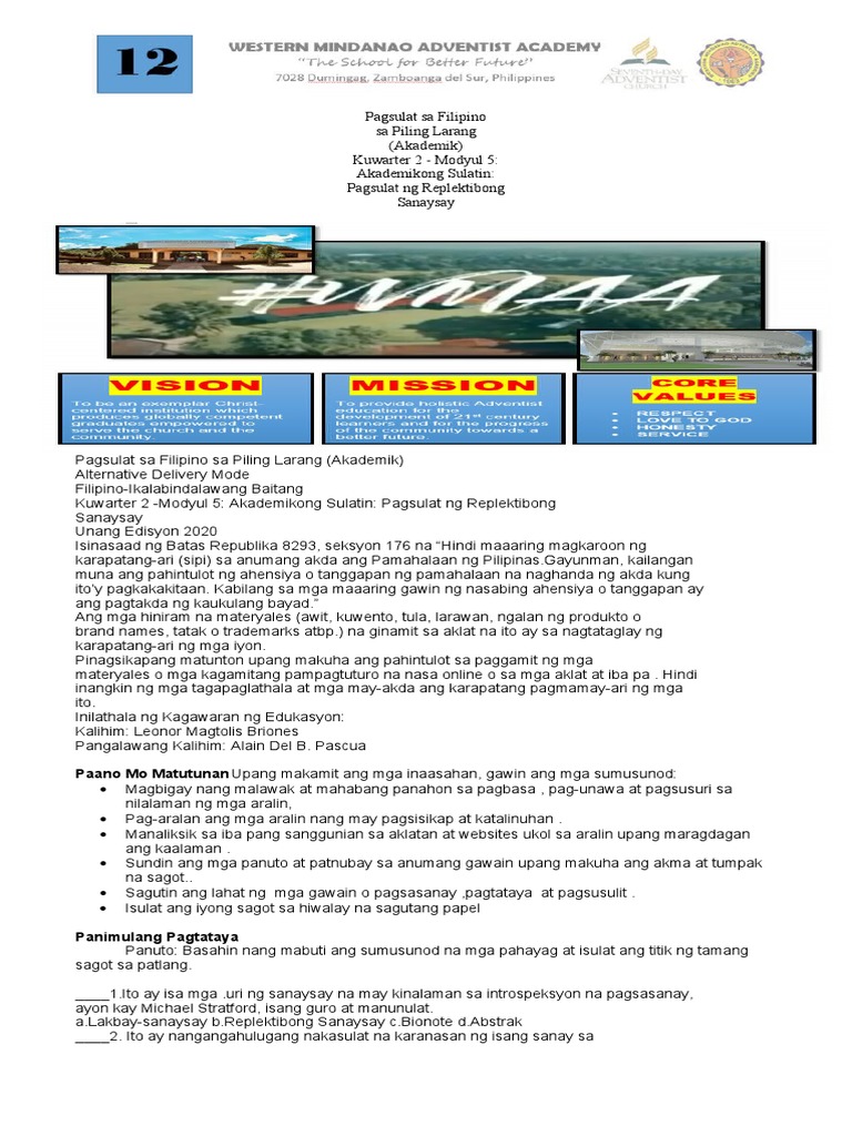 FIL.12-Gabay sa Pagsulat ng Replektibong at Iba Pang Sanaysay - Studocu