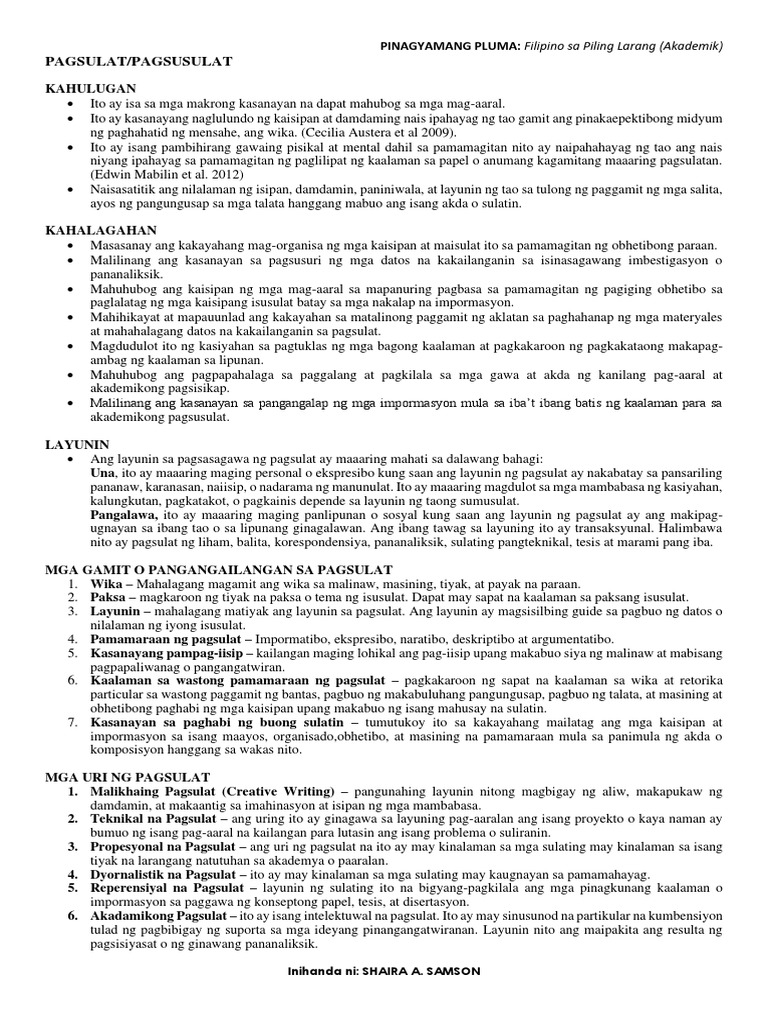 Pagsulat sa Filipino sa Piling Larang Akademik 12 Q1 ibat ibang uri ng ...